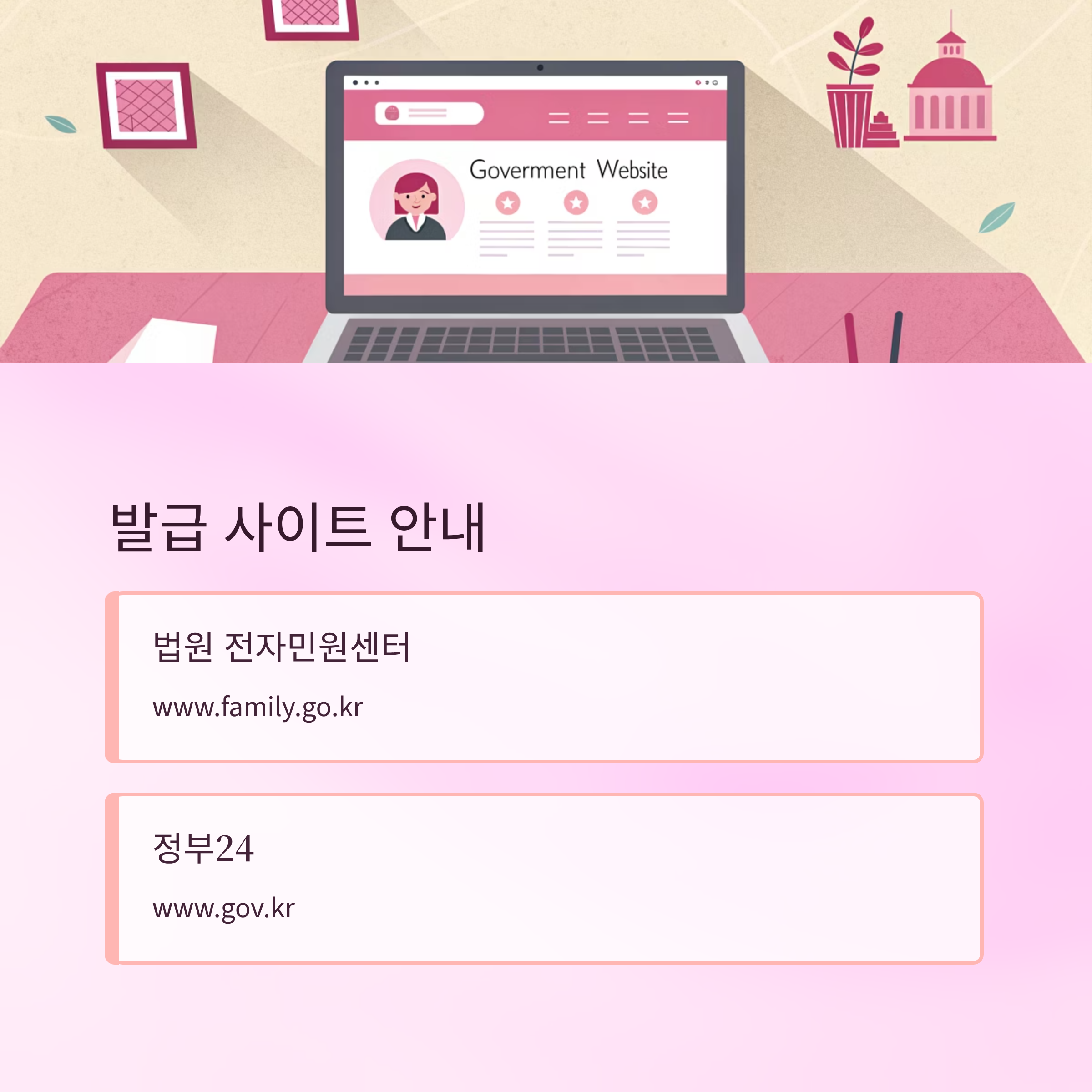 가족관계증명서를 인터넷으로 발급하려면 법원 전자민원센터(https://efamily.scourt.go.kr) 또는 정부24(www.gov.kr)를 이용할 수 있어요. 두 사이트 모두 발급이 가능하지만, 법원 전자민원센터가 조금 더 빠르고 직관적인 경우가 많아요.