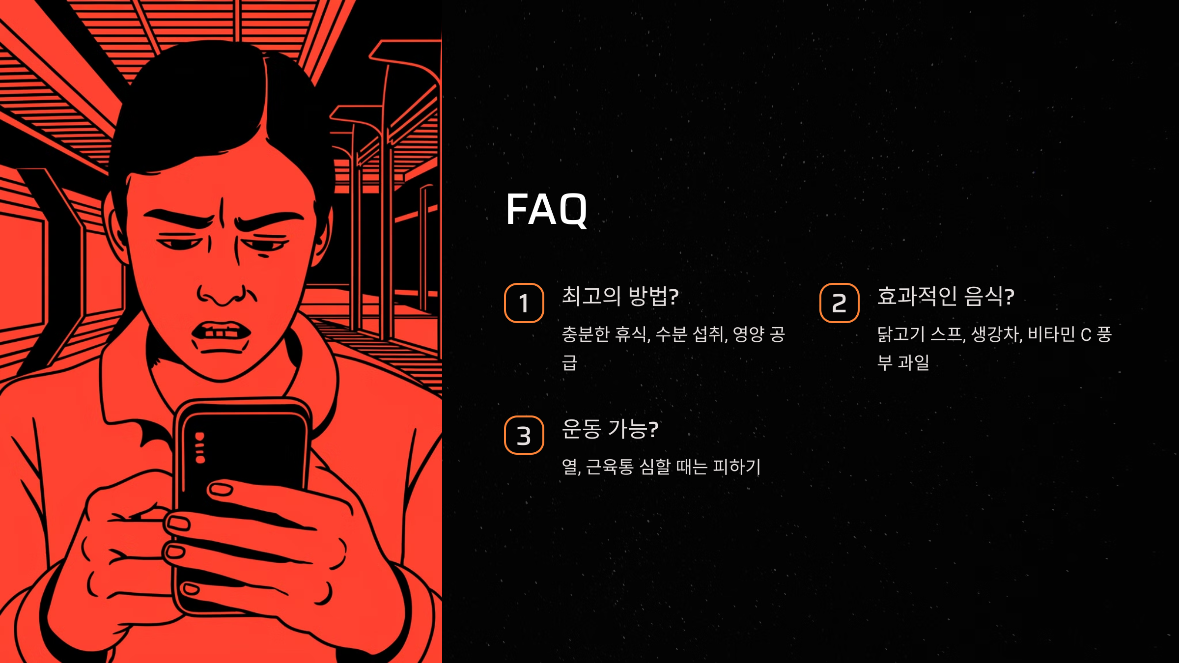 A1. 충분한 휴식, 수분 섭취, 영양 공급이 가장 중요해요.