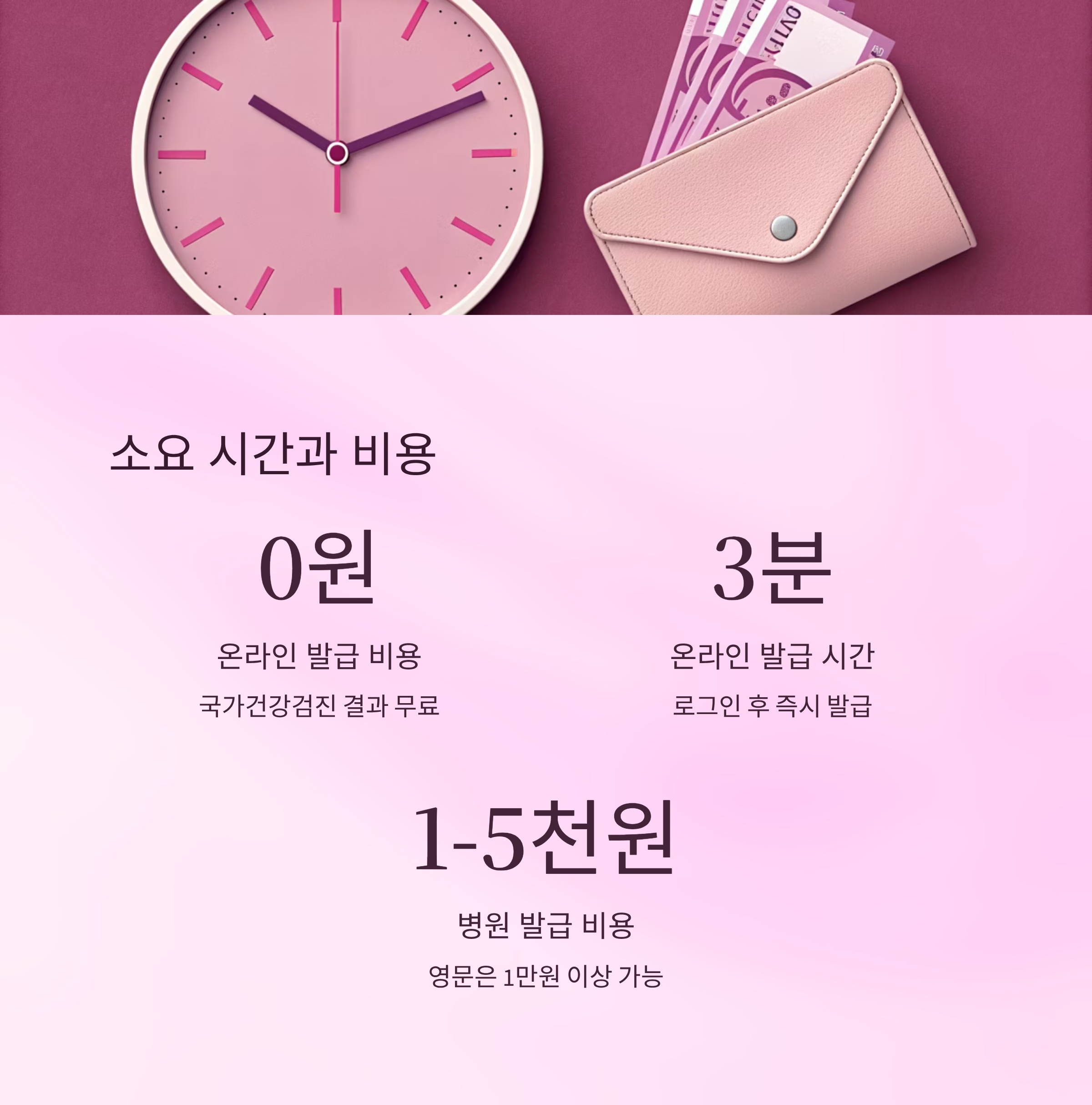 | 병원 발급 | 1~3일 | 1,000~5,000원 | 양식·번역 가능 |