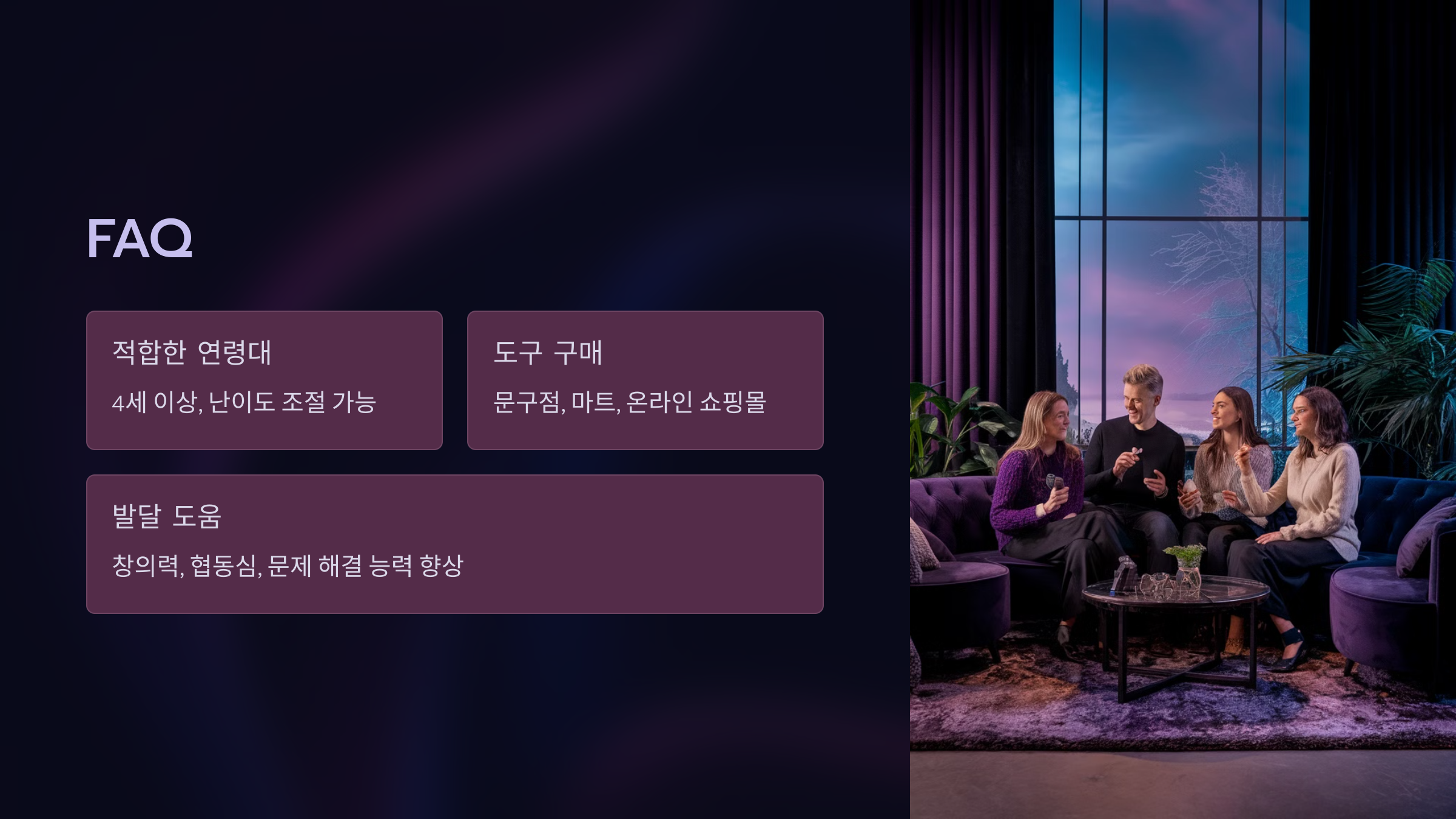 A1. 대부분의 놀이 활동은 4세 이상부터 참여할 수 있어요. 연령대에 맞게 난이도를 조절하면 더 즐겁게 참여할 수 있답니다.