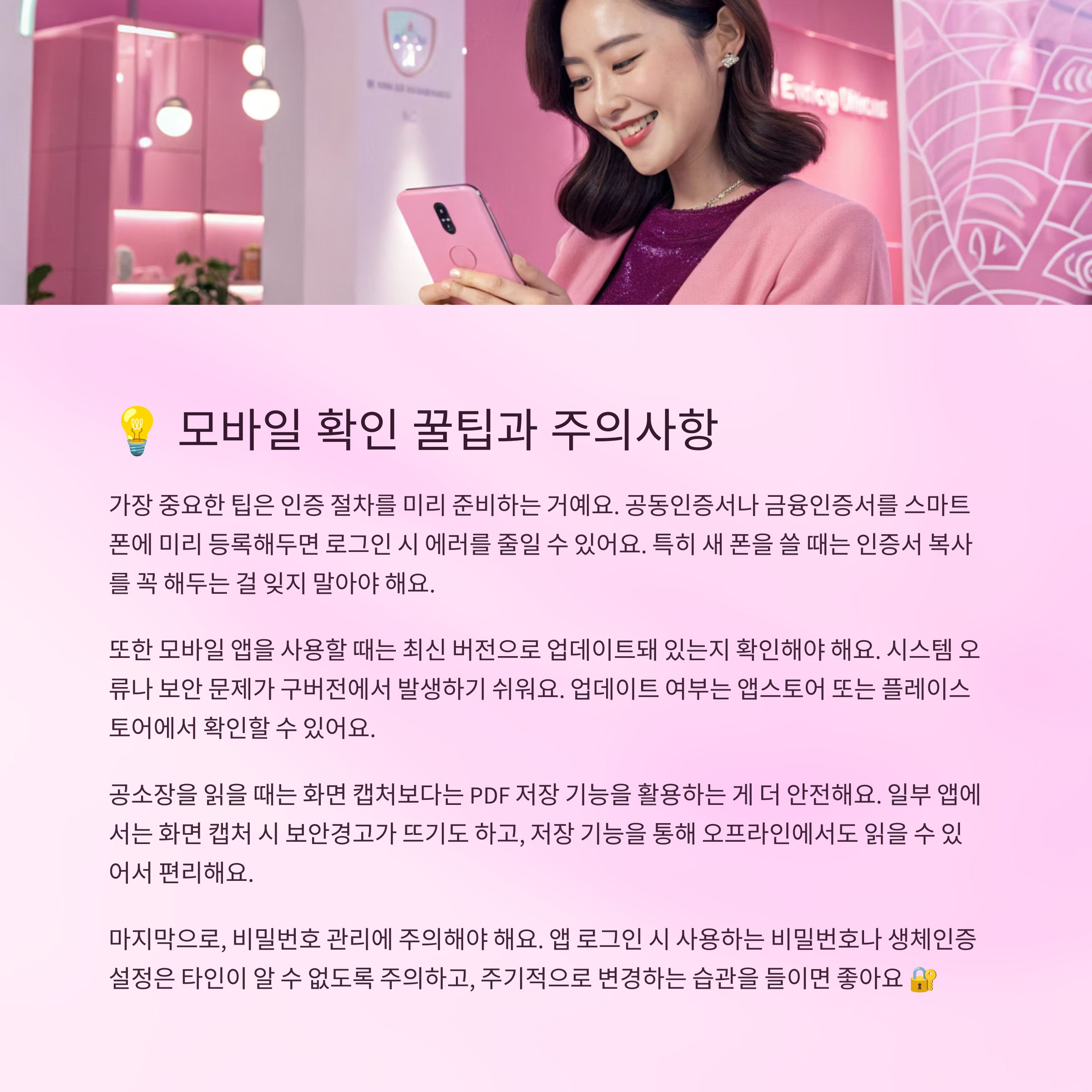 가장 중요한 팁은 인증 절차를 미리 준비하는 거예요. 공동인증서나 금융인증서를 스마트폰에 미리 등록해두면 로그인 시 에러를 줄일 수 있어요. 특히 새 폰을 쓸 때는 인증서 복사를 꼭 해두는 걸 잊지 말아야 해요.