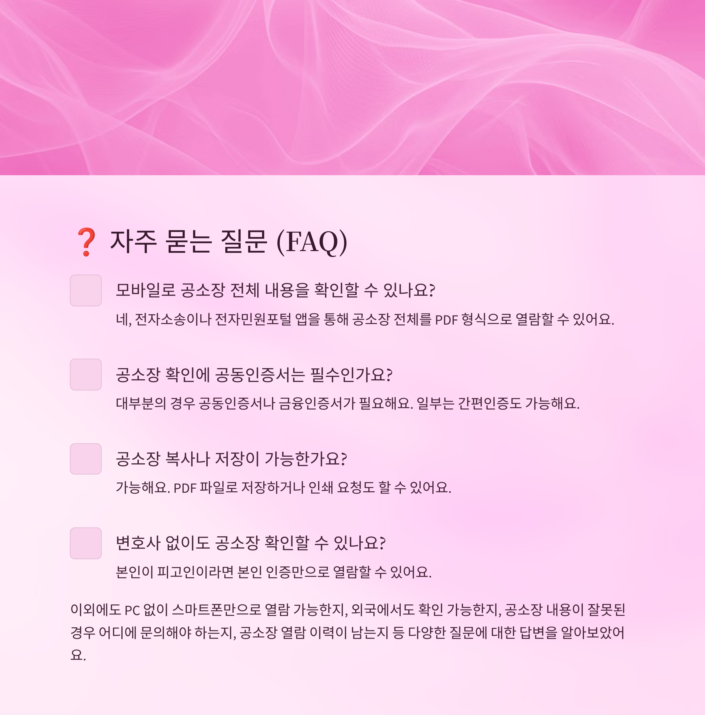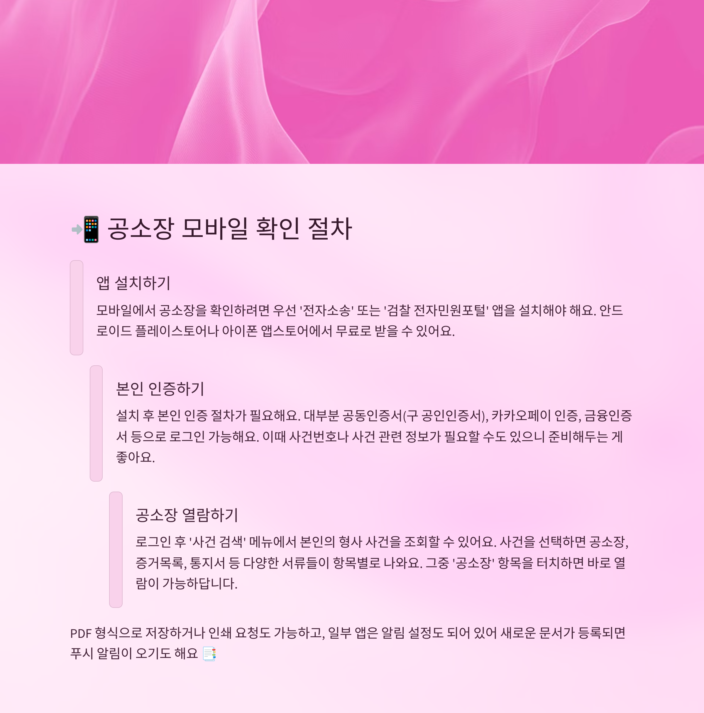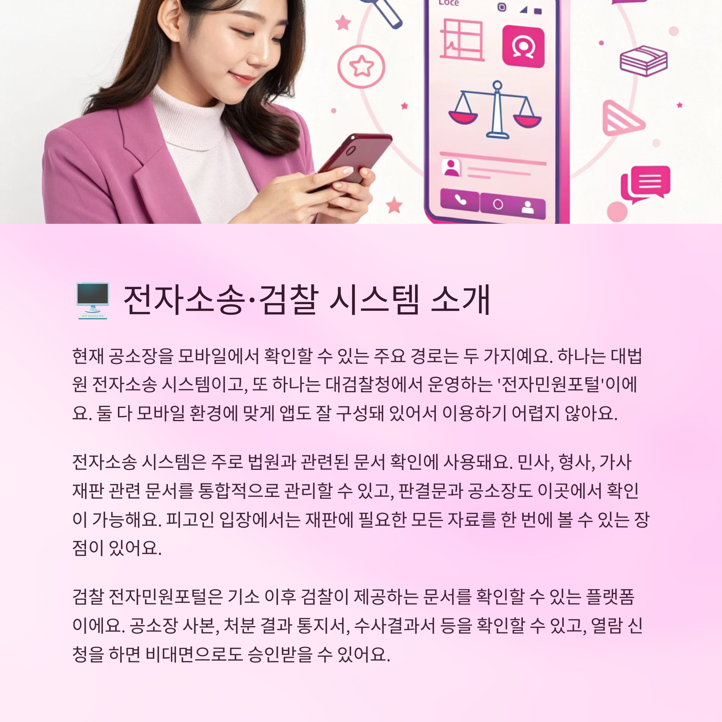 이제는 시간과 장소에 구애받지 않고 스마트폰으로도 공소장 확인이 가능하다는 건 큰 변화예요. 재판 준비에 큰 도움이 되니까요 📄