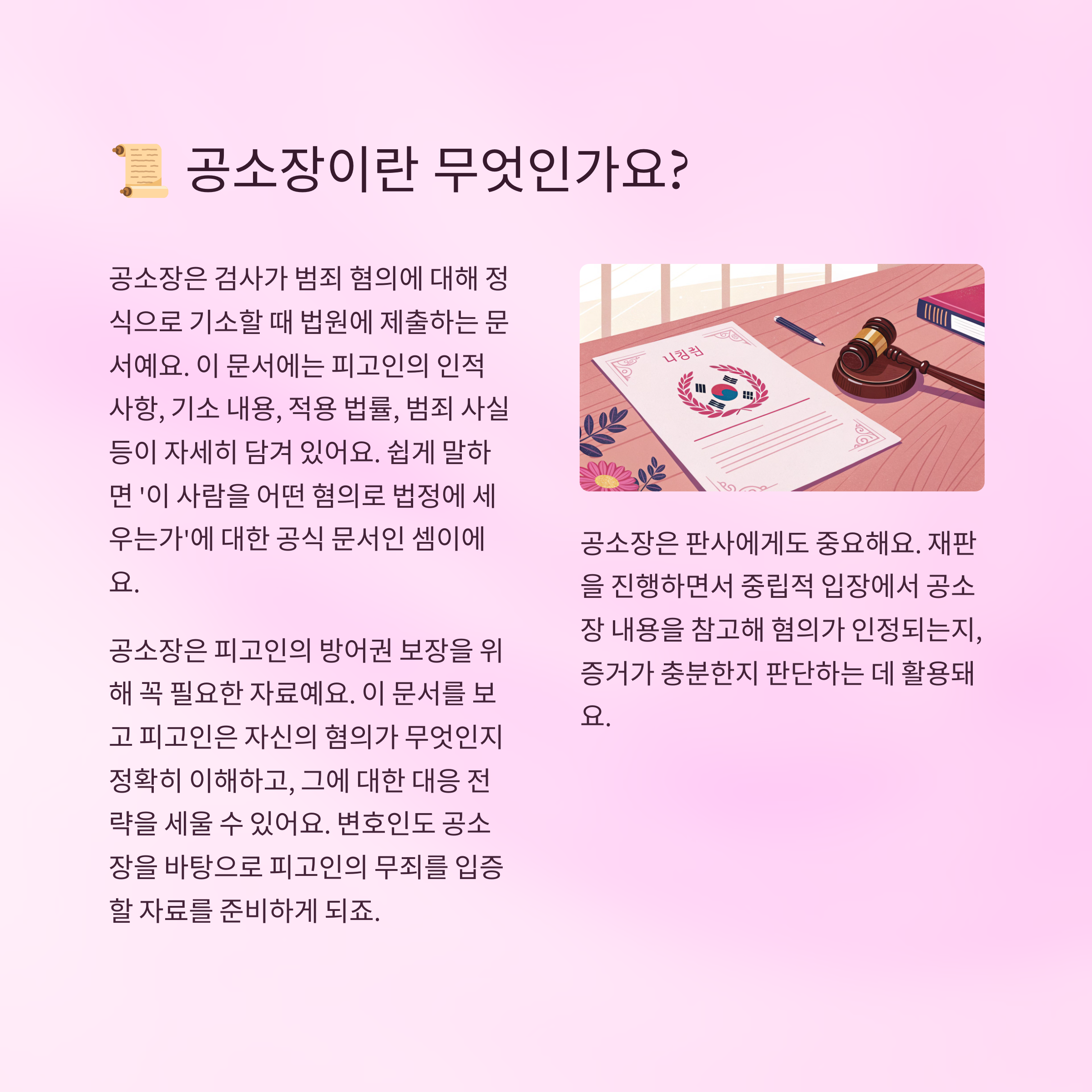 내가 생각했을 때 공소장은 형사 절차에서의 중심축 같아요. 이 문서 하나로 혐의의 시작, 반박의 시작, 심판의 기준이 모두 만들어지니까요.