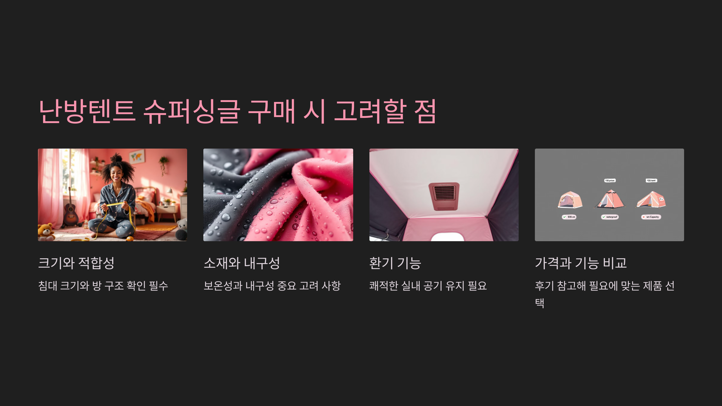 난방텐트 슈퍼싱글 구매 시 고려할 점
