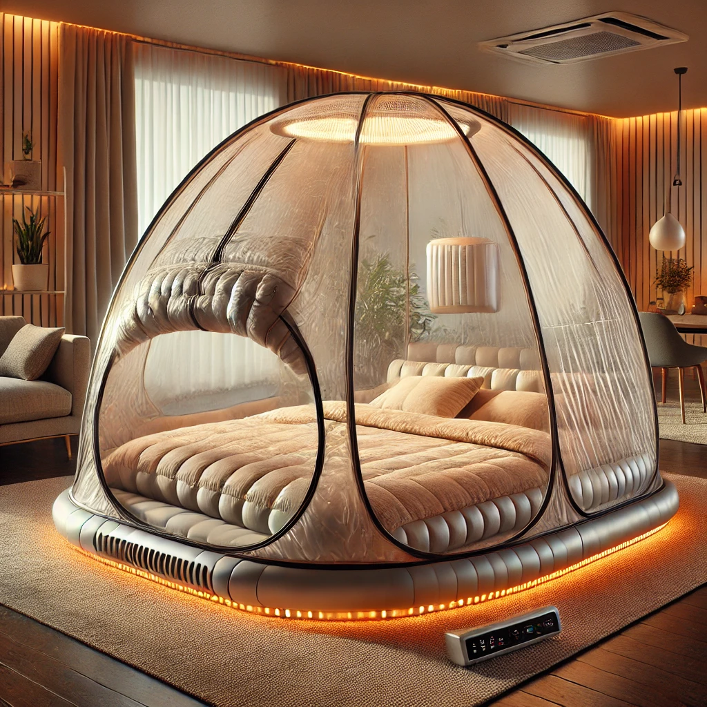 난방텐트 슈퍼싱글은 1인용 침대 크기에 최적화된 텐트형 난방 장치로, 실내에서 외부 공기를 차단하고 내부 온기를 유지하는 기능을 합니다. 침대 위나 바닥에 설치할 수 있어 공간 활용성이 뛰어나며, 특히 겨울철 전기매트와 함께 사용하면 더 큰 보온 효과를 얻을 수 있습니다.