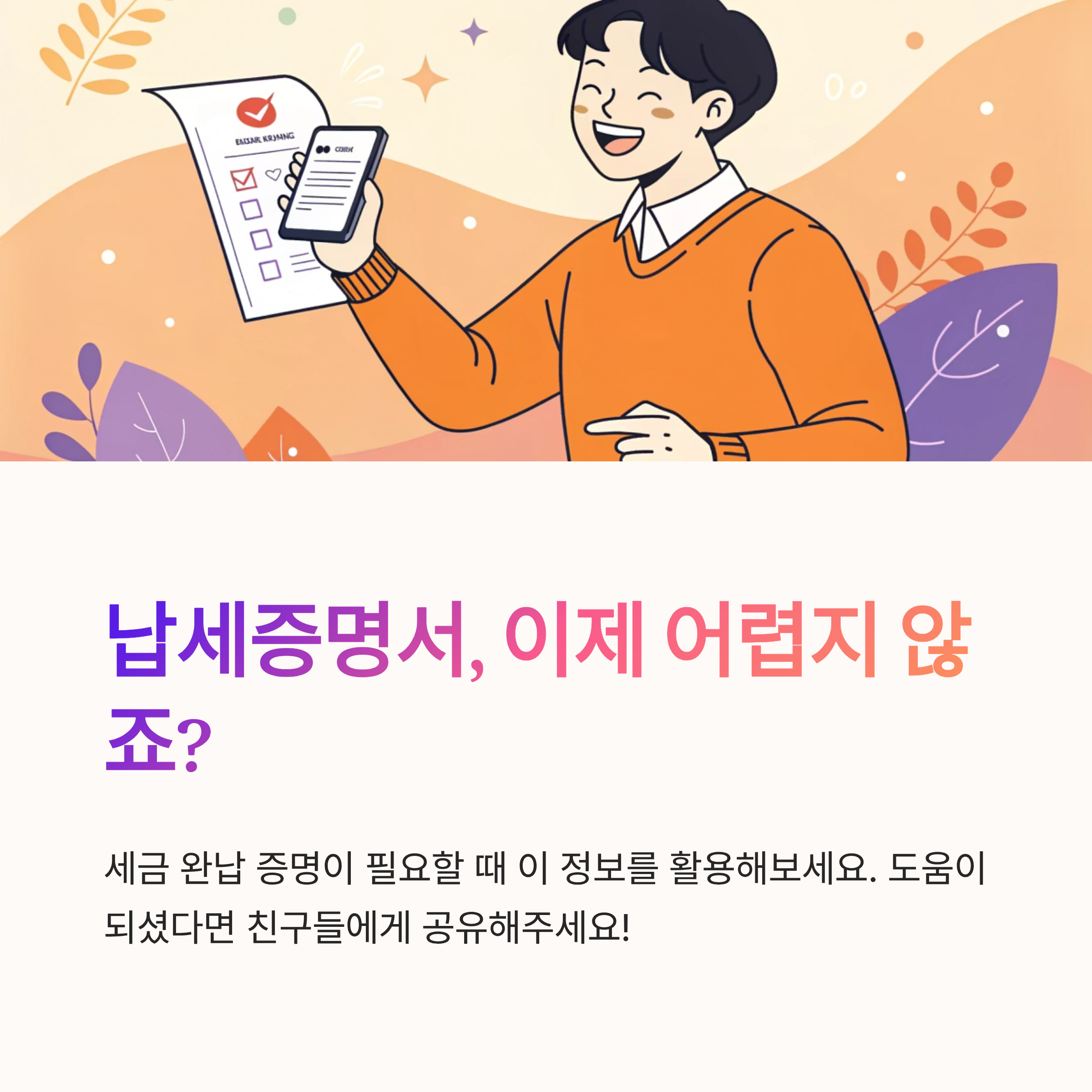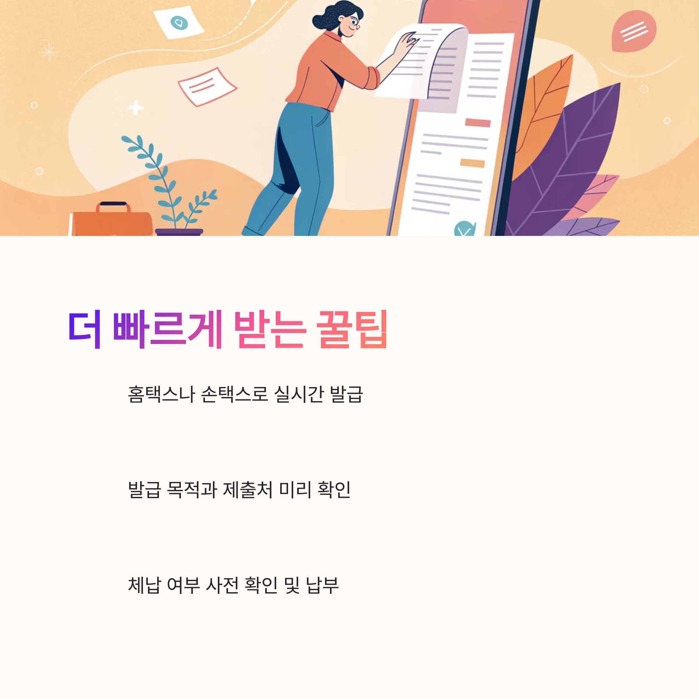 체납 여부를 미리 확인하고 납부까지 완료해 두면, 발급 거부로 시간을 허비하는 일을 피할 수 있어요. 홈택스 '나의 세금' 메뉴에서 미납 내역을 쉽게 조회할 수 있습니다.