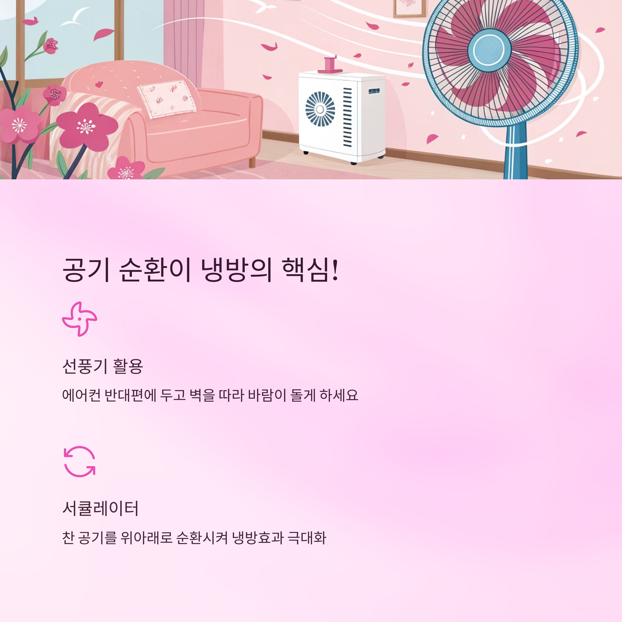 이처럼 냉방 효율은 단순히 전원을 켜는 것보다 훨씬 다양한 요소의 조합이에요. 하나하나 신경 쓴다면 전기요금 절약과 시원한 여름을 동시에 잡을 수 있어요. 😎