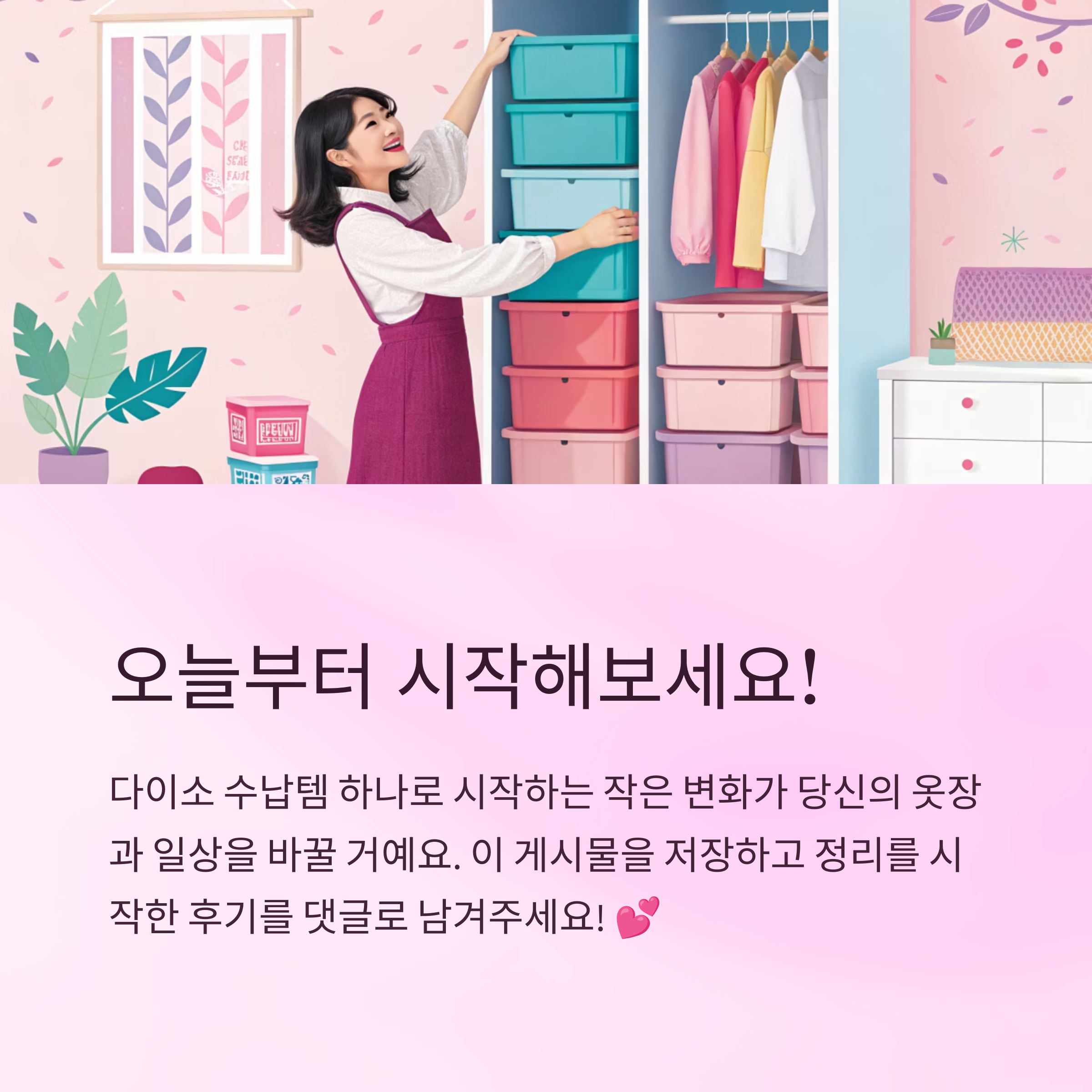 이런 후기를 보면 누구나 할 수 있다는 확신이 생겨요. 다이소는 접근성이 좋아서 동네 어디에서든 필요한 수납템을 구입할 수 있고, 저렴한 가격 덕분에 부담 없이 도전할 수 있어요. 오늘 당장 한 개라도 시작해보세요. 정말 인생이 달라질 수 있어요! 👗👖👚