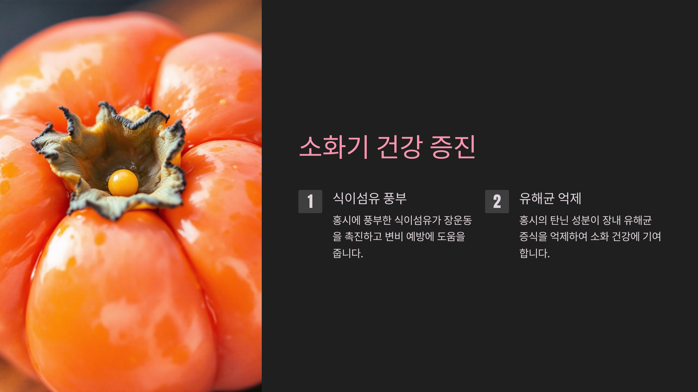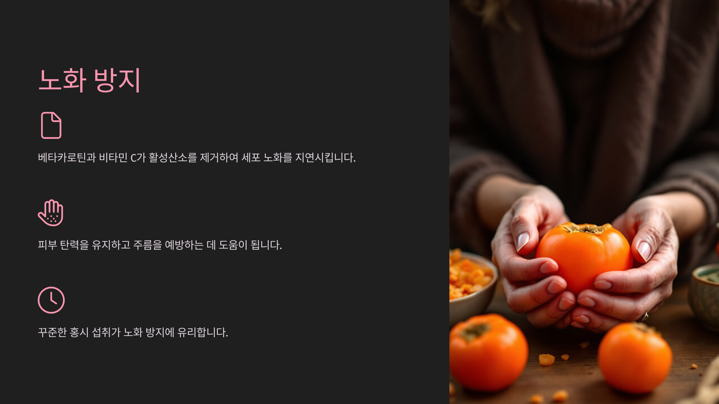 꾸준한 홍시 섭취는 노화를 막는 데 유리합니다.