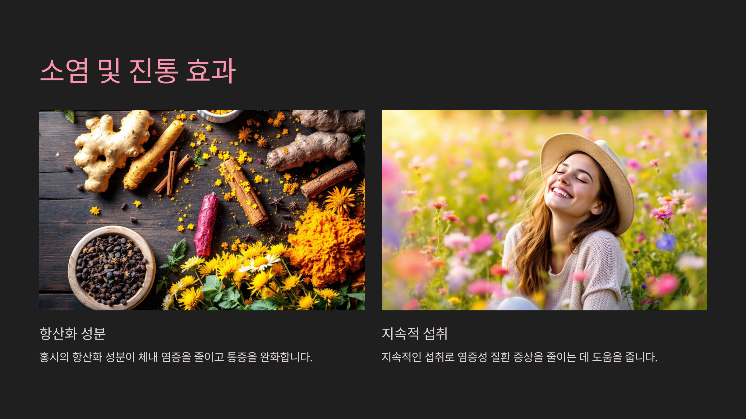 비타민 C와 항산화 성분이 염증을 억제하고 통증을 줄여줍니다.
