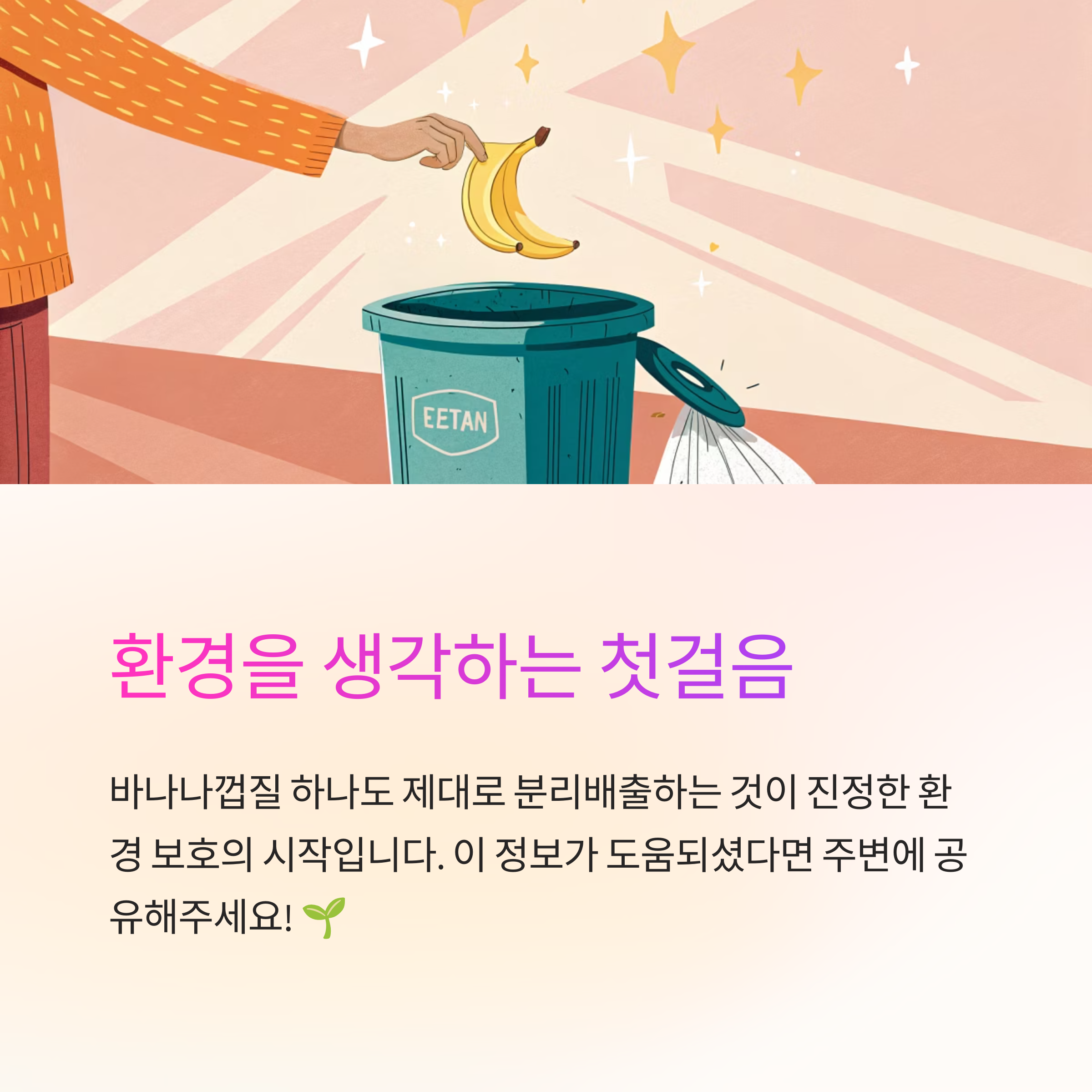 이번 글에서는 바나나껍질 음식물쓰레기 분리방법에 대해 정확하고 실용적인 정보만 담았어요. 내가 생각했을 때, 이렇게 일상에서 자주 나오는 쓰레기 하나도 제대로 분리하는 게 진짜 환경을 생각하는 첫걸음 같더라고요 🍌