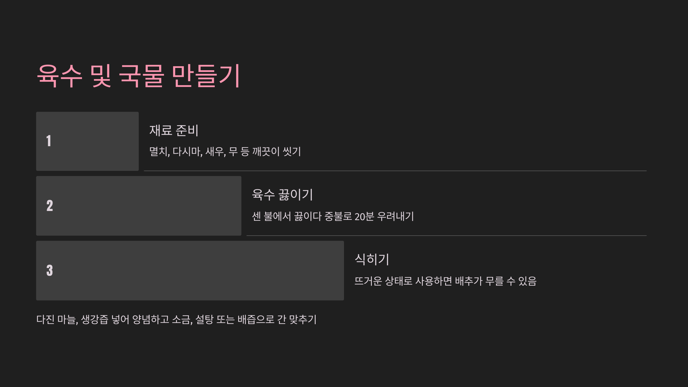 깊고 시원한 국물을 만들기 위해서는 육수를 제대로 준비하는 것이 필수입니다.