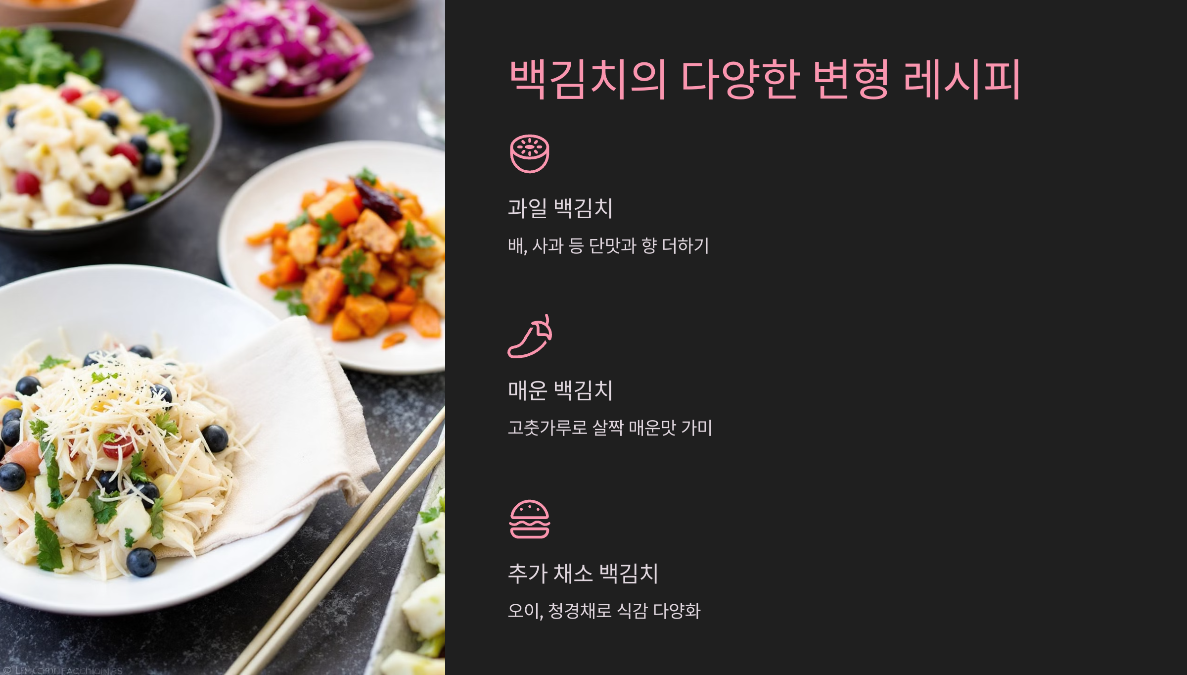 백김치를 새로운 스타일로 즐기고 싶다면 다음 아이디어를 참고하세요.