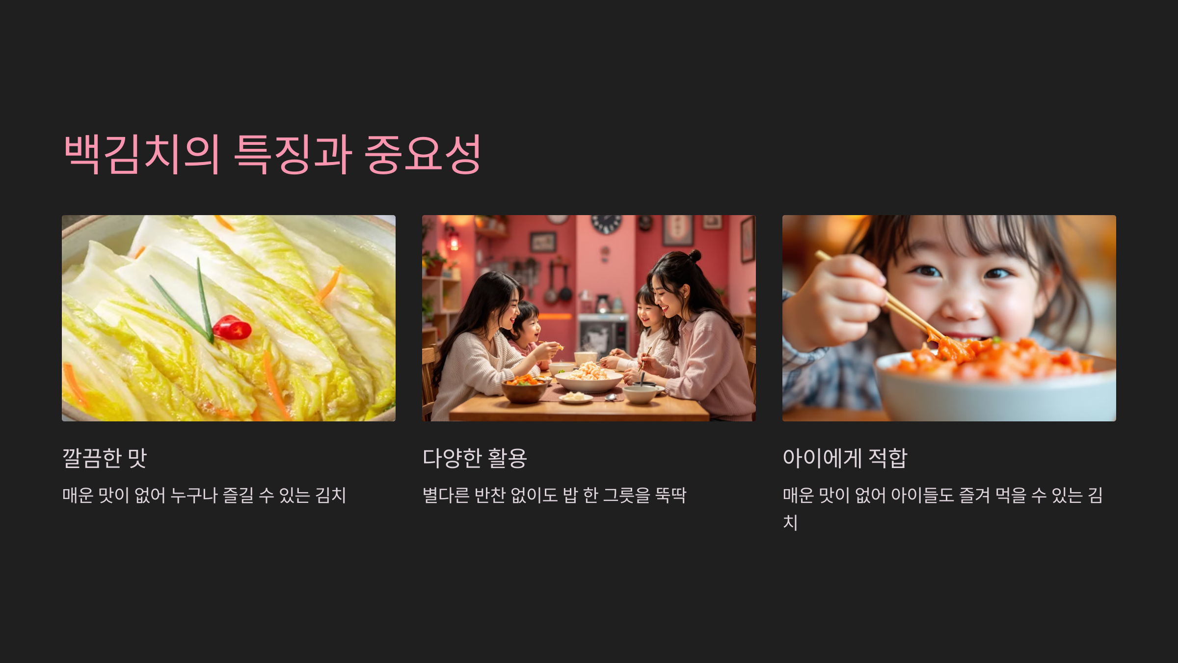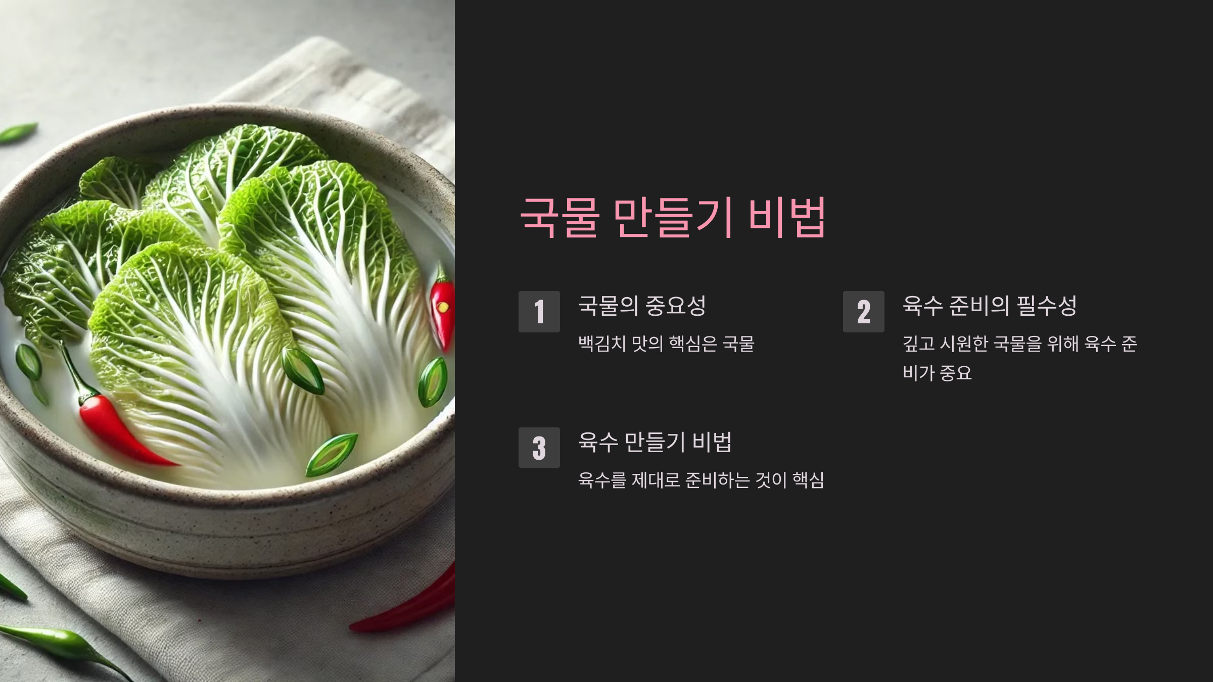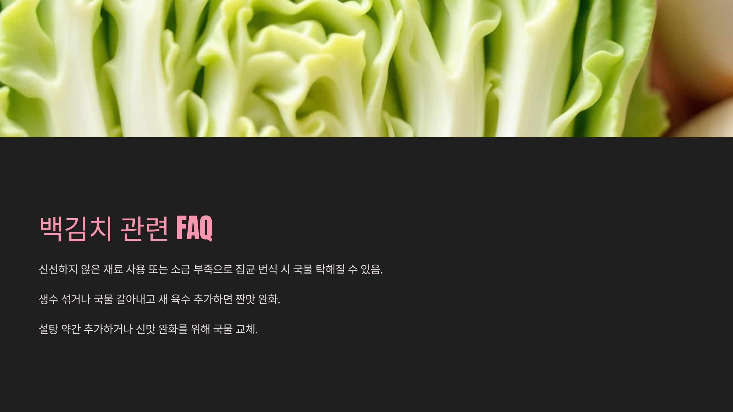 백김치는 숙성 과정에서 맛이 점점 깊어지며, 적절한 환경에서 보관해야 최상의 맛을 유지할 수 있습니다.