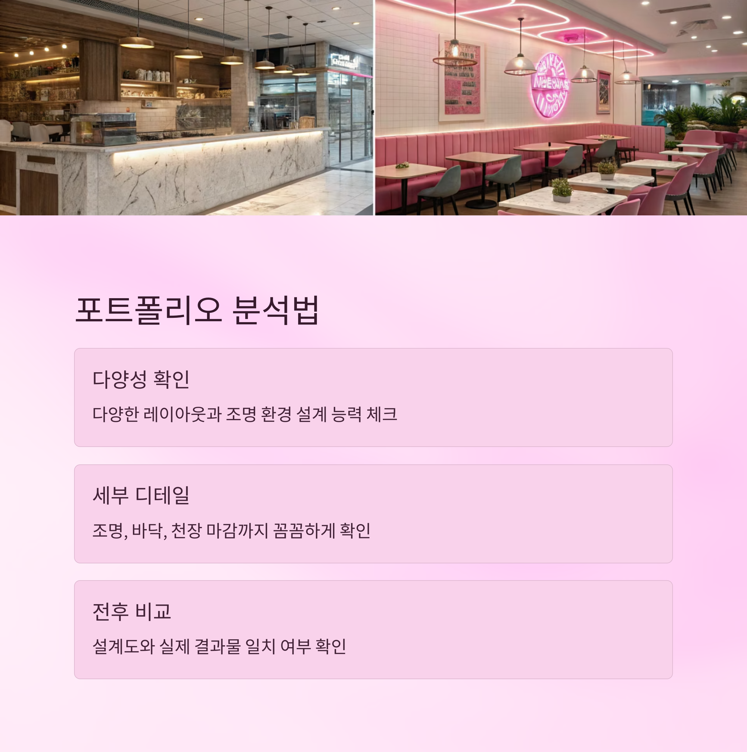 포트폴리오는 업체의 ‘실력’을 보여주는 거울이에요. 홈페이지나 SNS에 올라온 인테리어 사진들을 보면 어떤 스타일을 주로 하는지, 어떤 재료를 사용하는지 감이 오죠. 여기서 중요한 건 '다양성'과 '세부 디테일'이에요.
