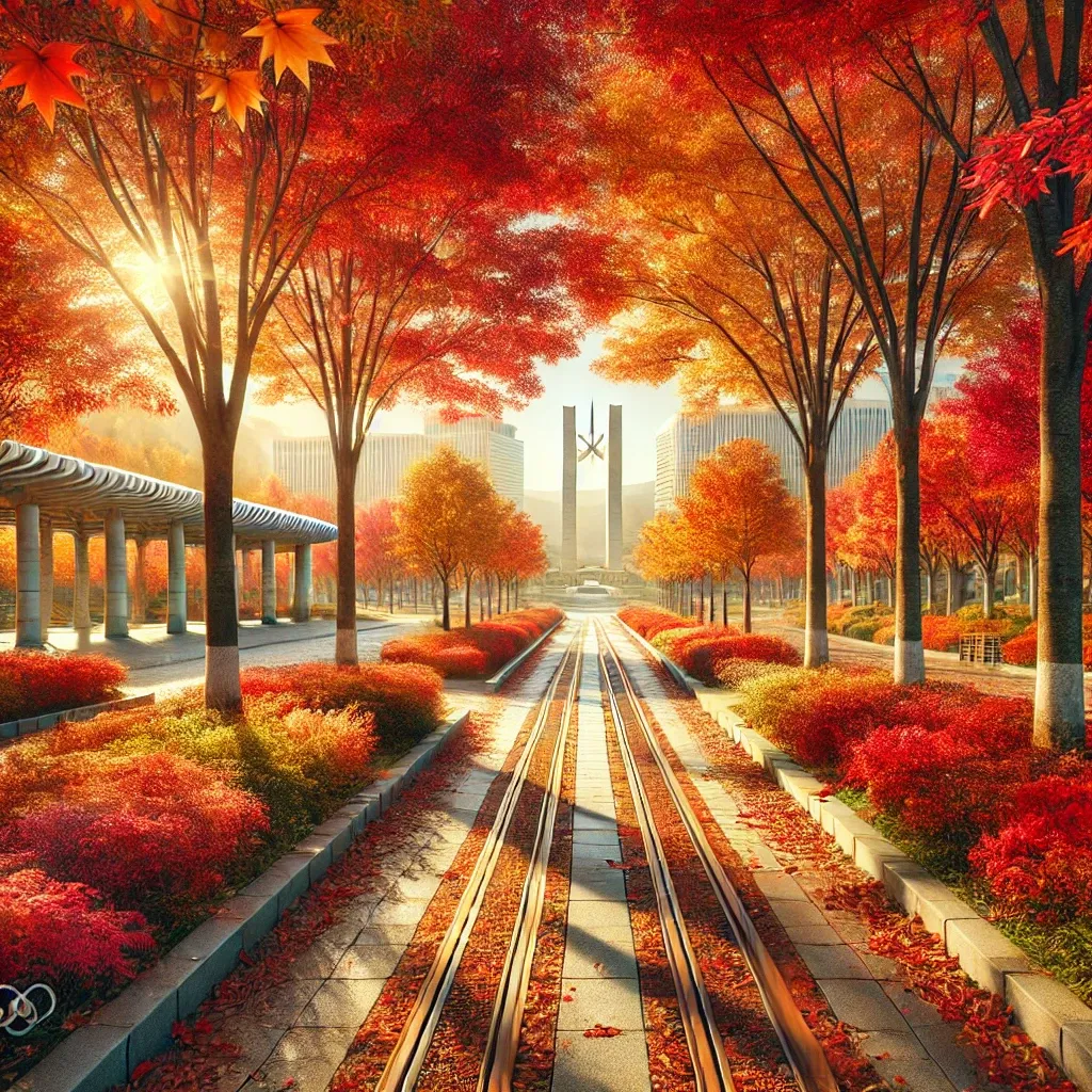 올림픽 공원은 넓은 잔디밭과 산책로가 어우러진 대규모 공원으로, 가을이면 단풍과 억새가 어우러져 이색적인 풍경을 선사합니다.