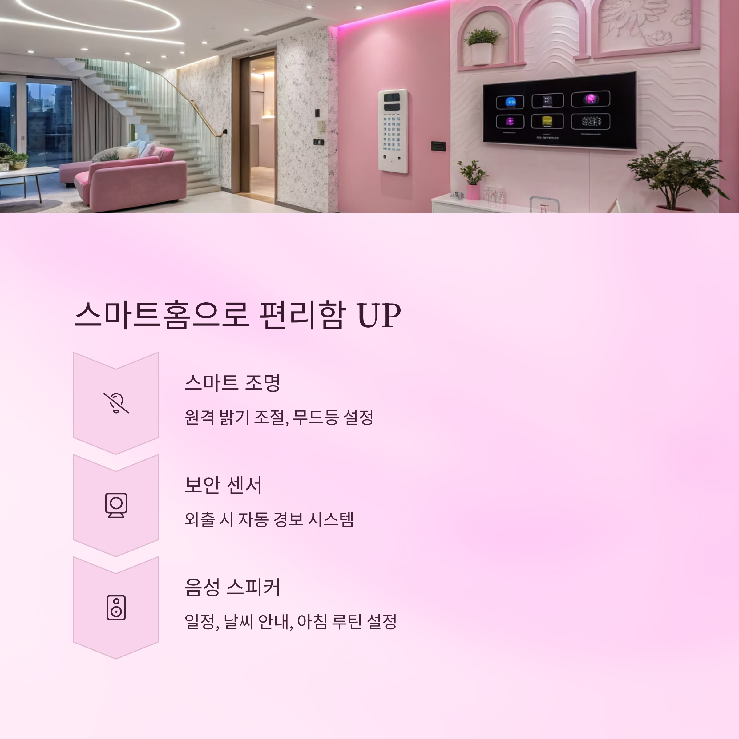 조명, 냉난방, 블라인드, 보안 시스템까지 모두 스마트폰 앱이나 음성 명령으로 제어할 수 있는 시스템을 선호하는 가구들이 늘고 있어요. 특히 IoT 연동이 잘 된 시스템은 효율성도 높고 만족도도 좋아요.