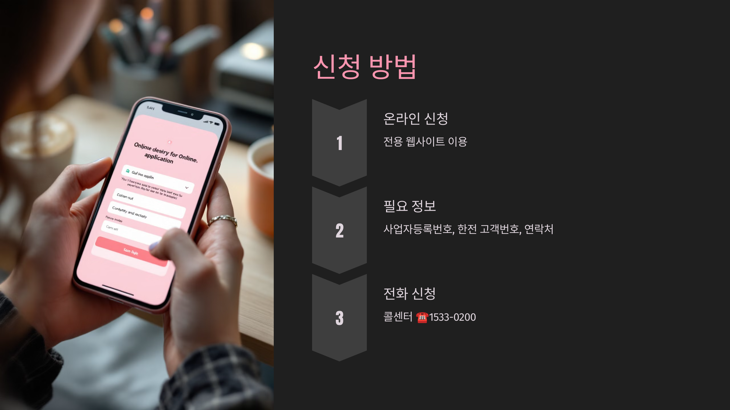 신청은 온라인과 전화 두 가지 방법으로 진행되며, 사업자는 편리한 방법을 선택할 수 있습니다.