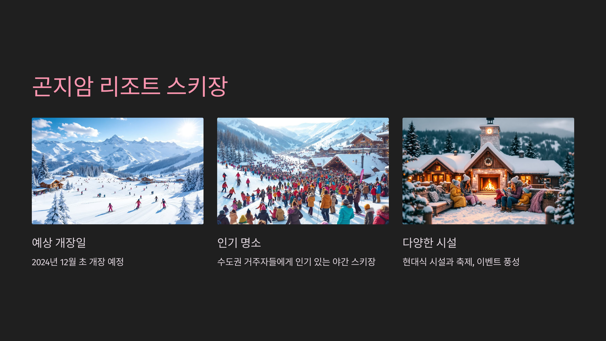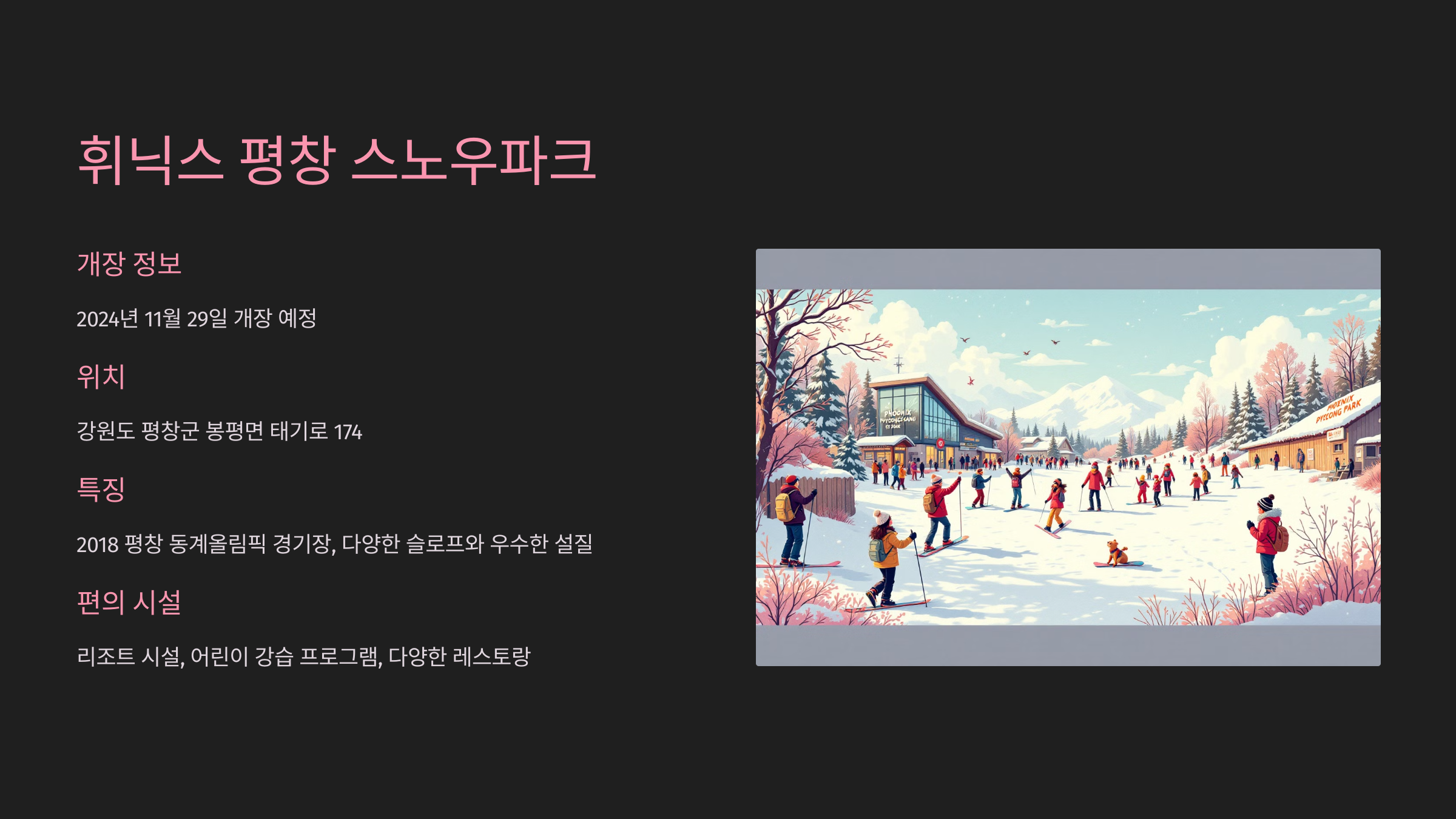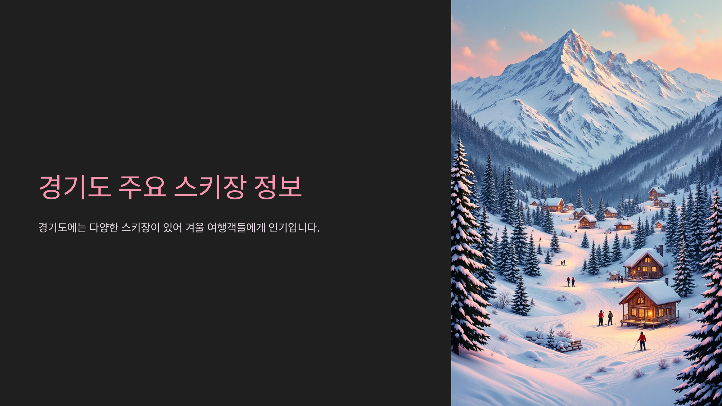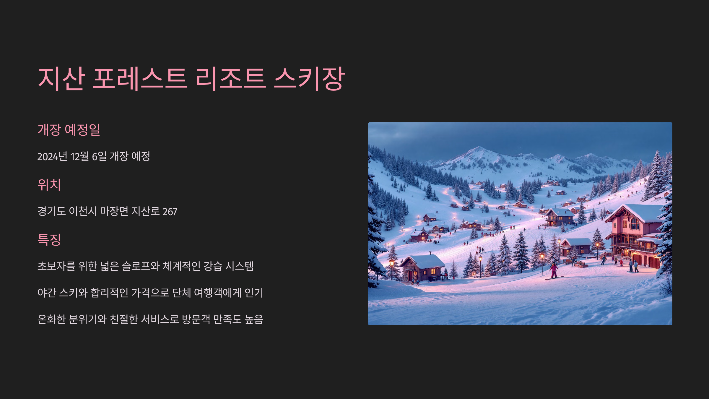 - 장비 대여 및 예약: 스키 장비는 시즌 중에 수요가 많으니 사전에 예약하세요.