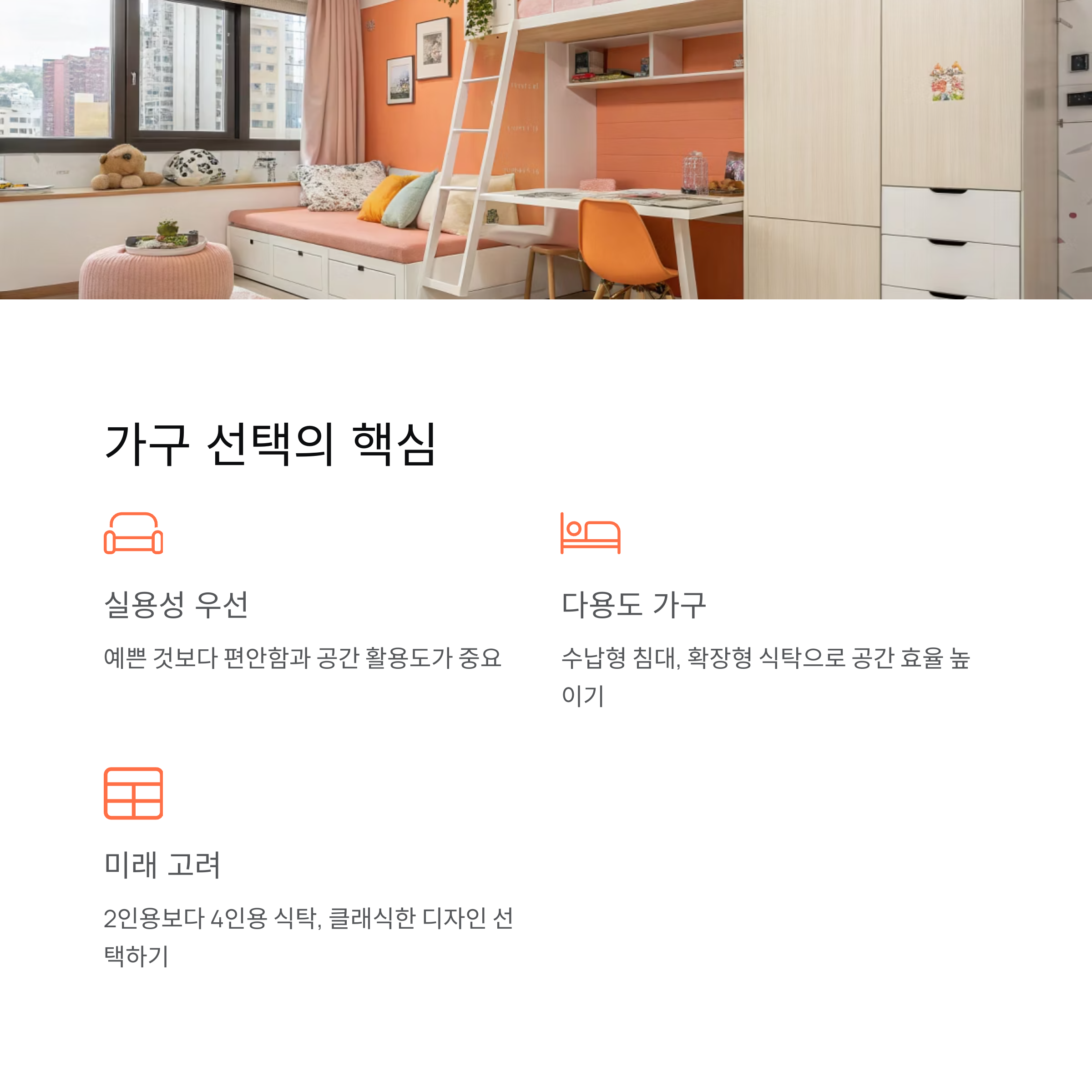 가구 선택의 기준은 두 사람의 라이프스타일에 맞아야 해요. “예뻐 보여서”보다 “매일 사용할 수 있어서”를 기준으로 선택하면 후회 없는 인테리어가 될 거예요. 🛋️✨