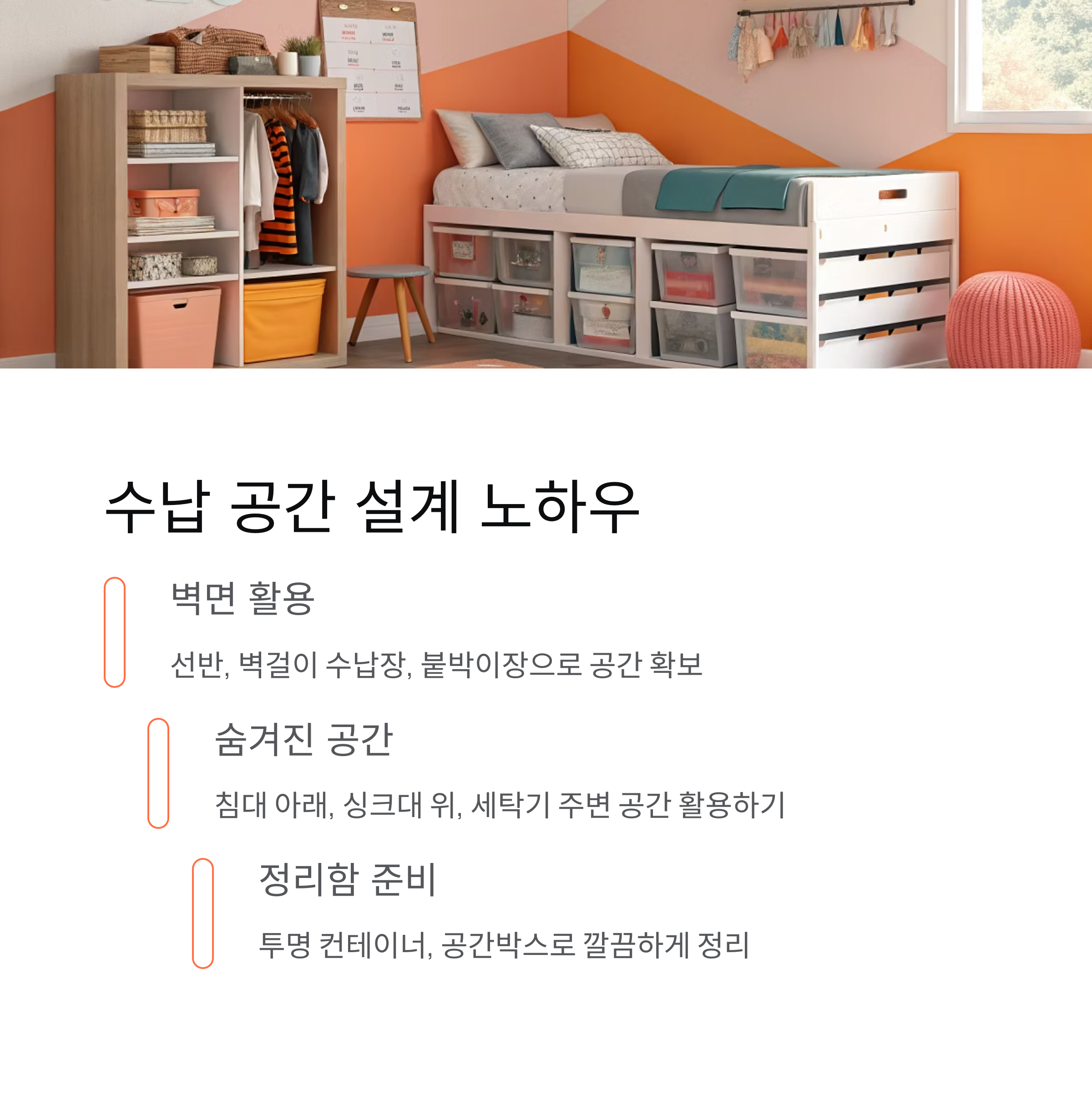 신혼집이 넓지 않은 경우, 수납이 인테리어의 성패를 좌우해요. 눈에 보이지 않게 깔끔하게 정리된 공간은 훨씬 넓어 보이기도 하죠. 그래서 처음부터 ‘숨겨진 수납’을 계획하는 게 중요해요.