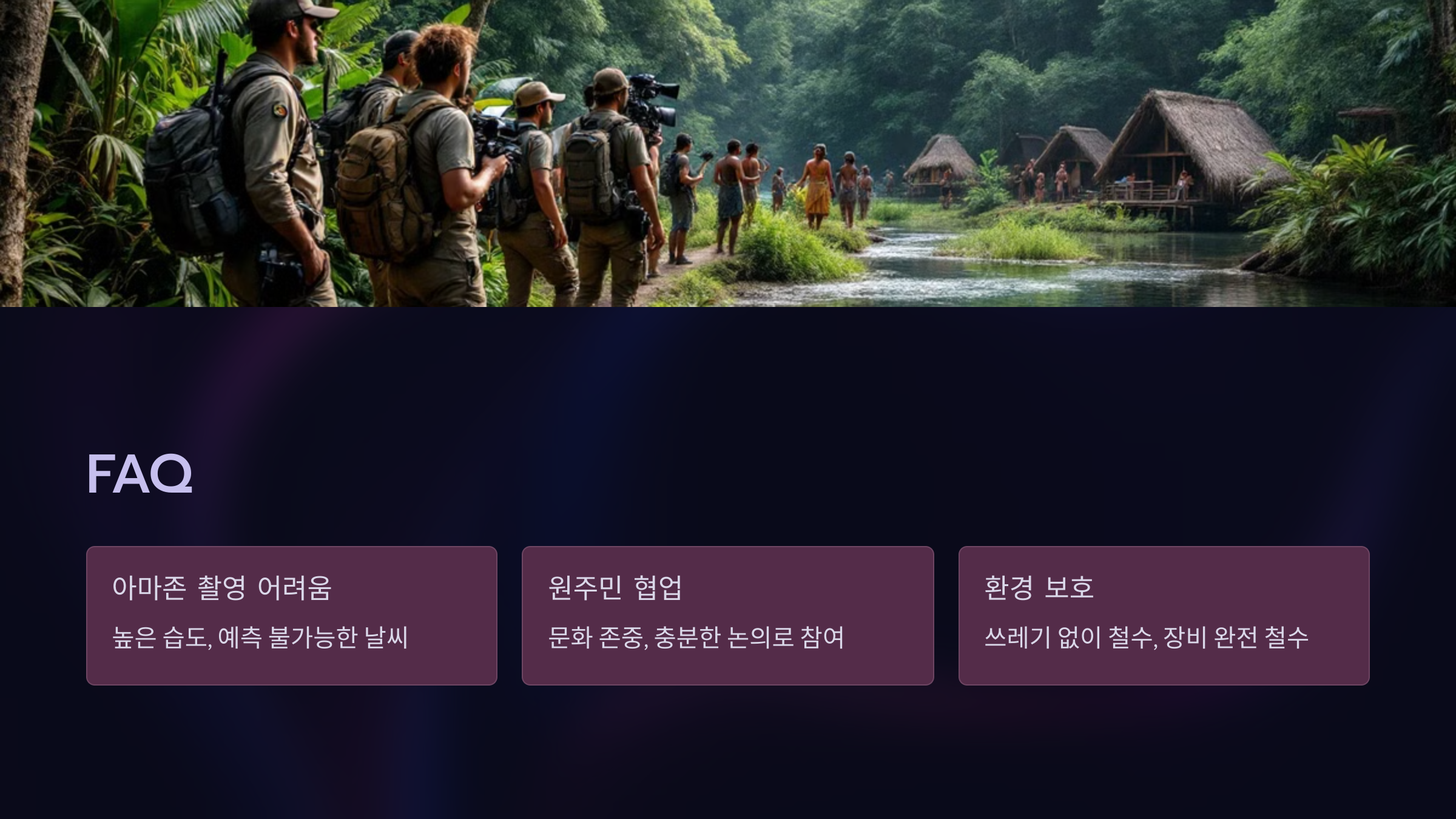 Q1. 아마존 밀림 촬영 시 가장 큰 어려움은 무엇이었나요?