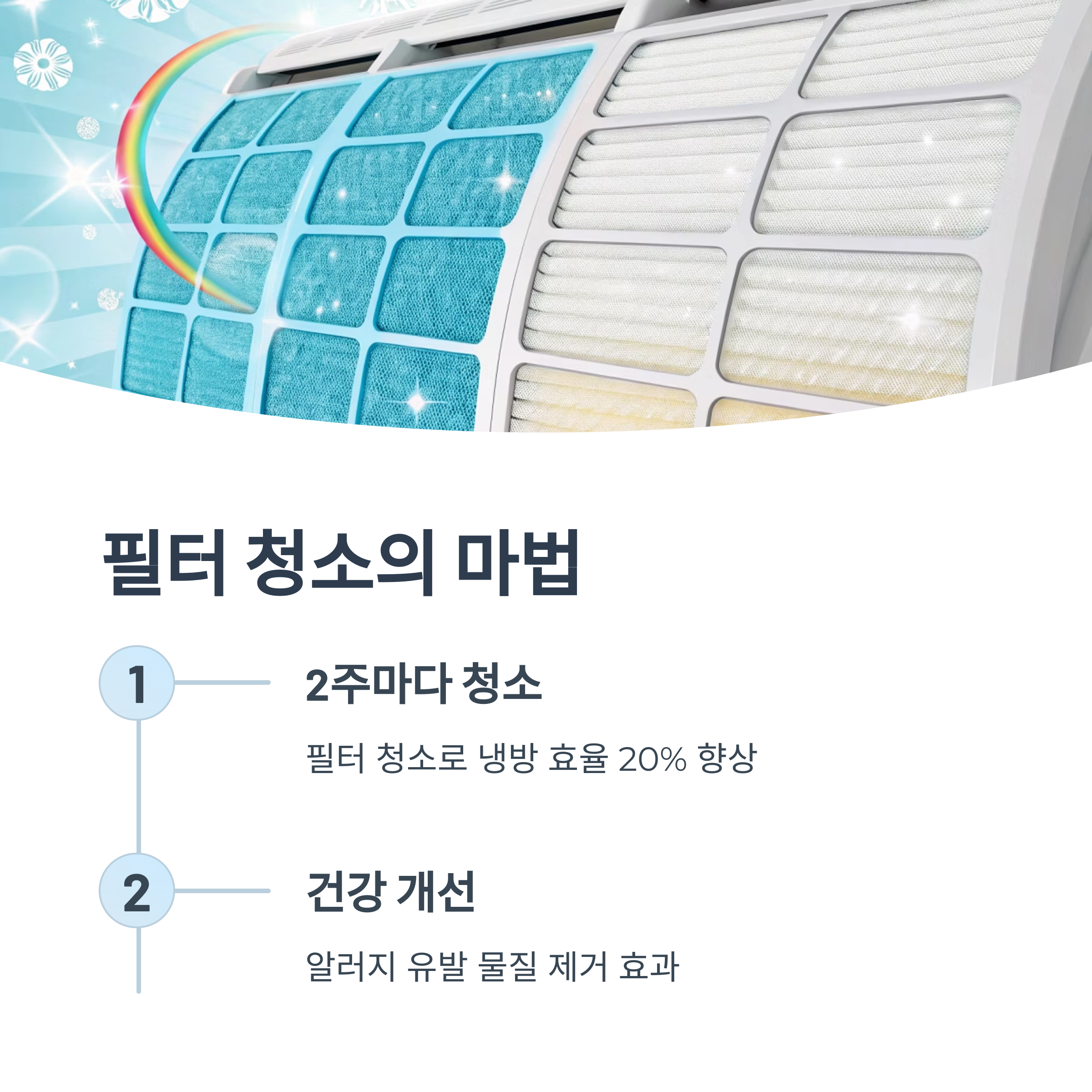 | 필터 청소 | 2주 1회 | 냉방 효율↑ | 최대 20% |