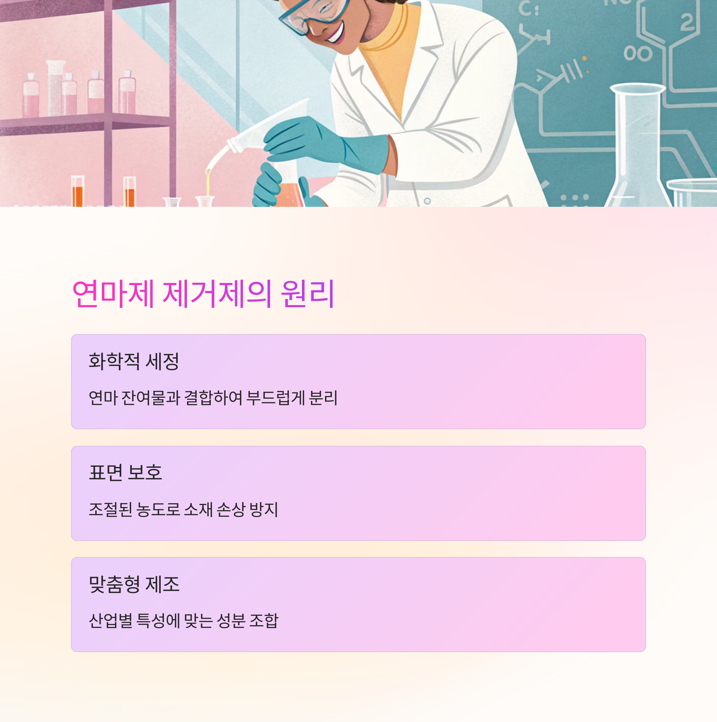 연마제는 가공 품질을 높이기 위한 재료지만, 공정이 끝난 후에 남아있는 찌꺼기는 반드시 깨끗하게 제거해야 해요. 이런 청정 공정이 필요한 산업군에선 연마제보다 제거제가 더 중요한 역할을 하기도 해요.