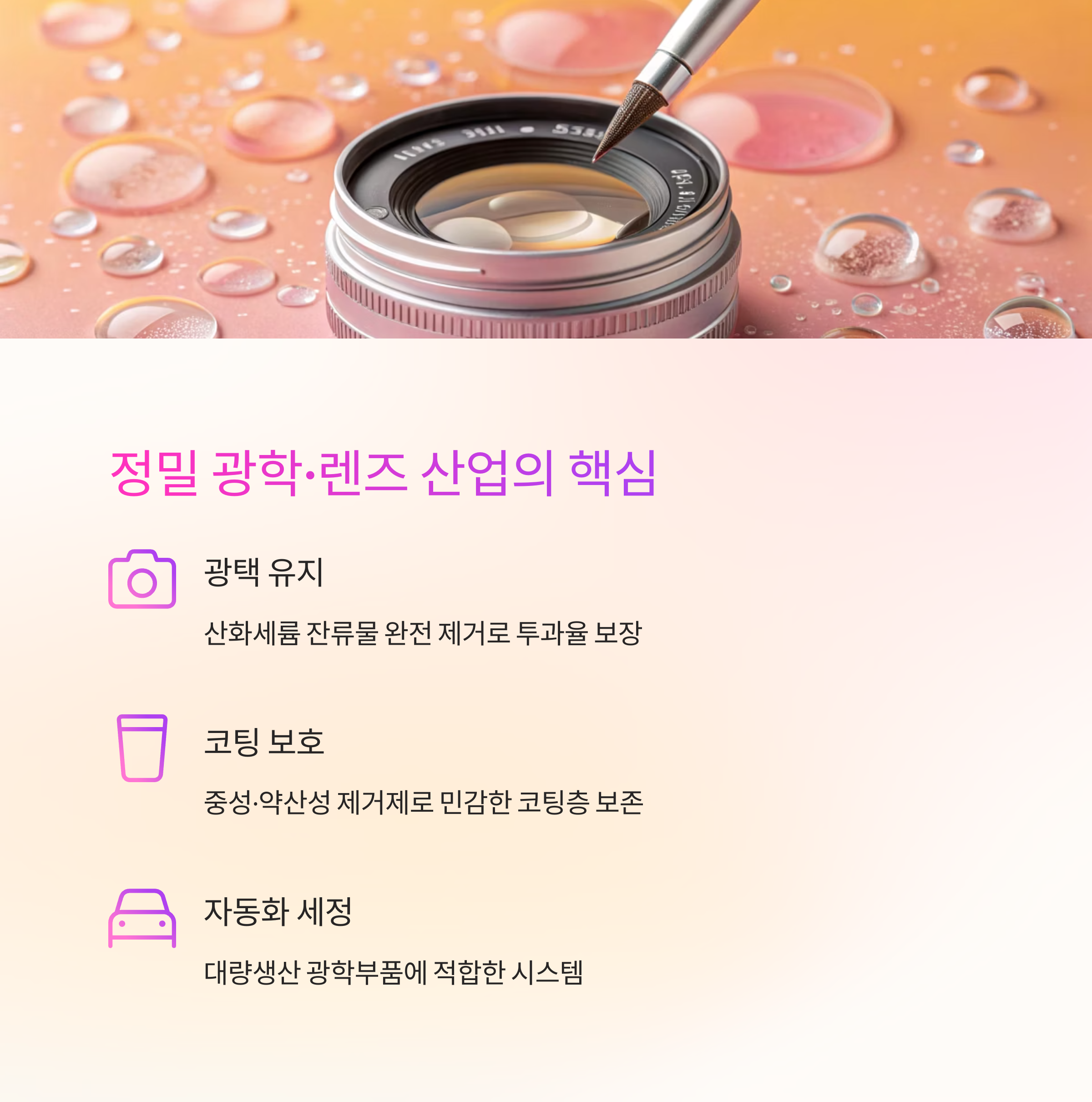 | 중성 제거제 | AR 코팅렌즈 | pH 중성, 비부식성 | 민감 코팅 적합 |