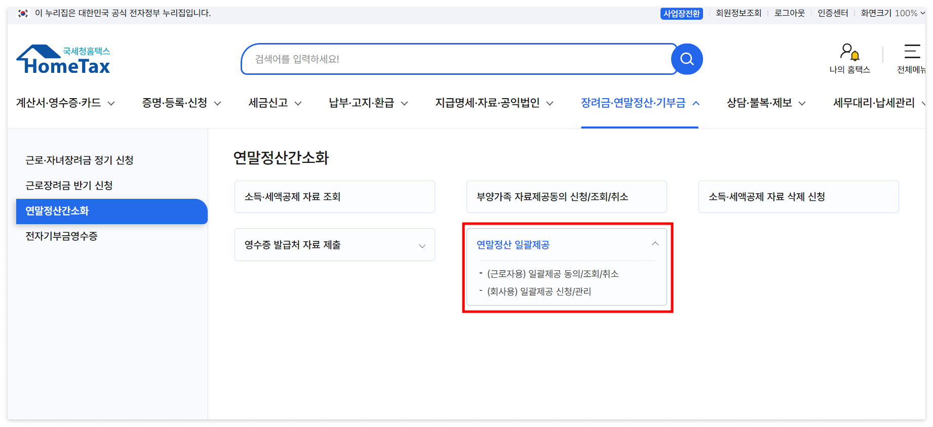 연말정산 일괄제공의 정의