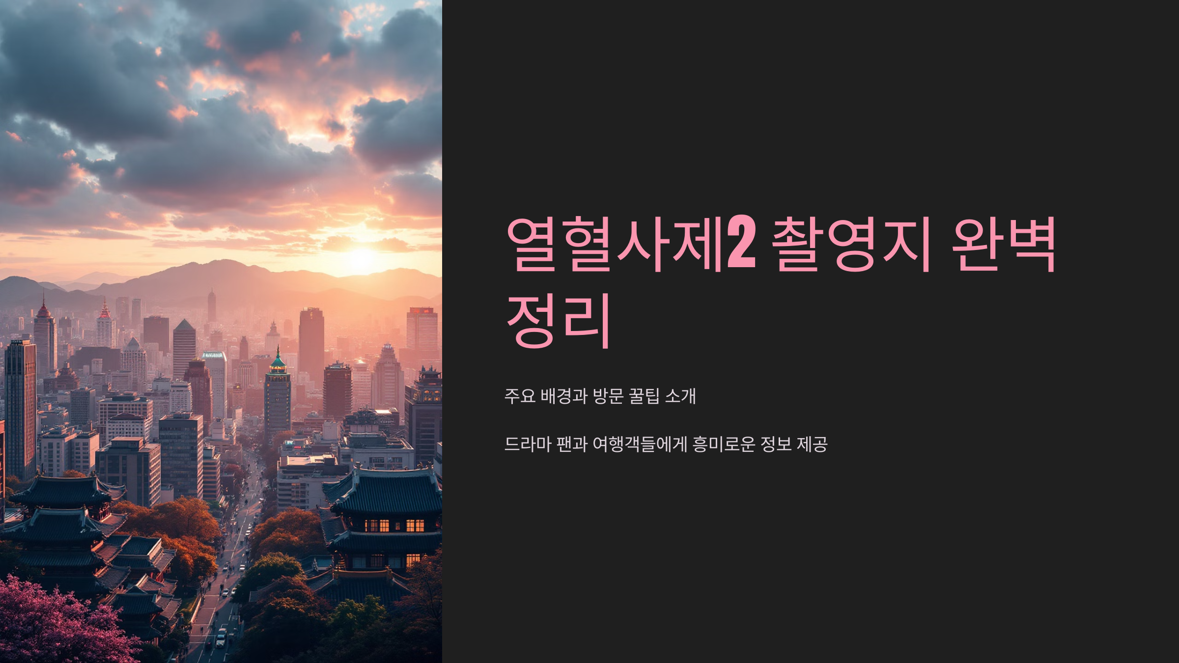 이번 글에서는 드라마의 주요 촬영지를 중심으로 그곳이 가진 매력과 방문 시 유용한 팁을 정리했습니다.