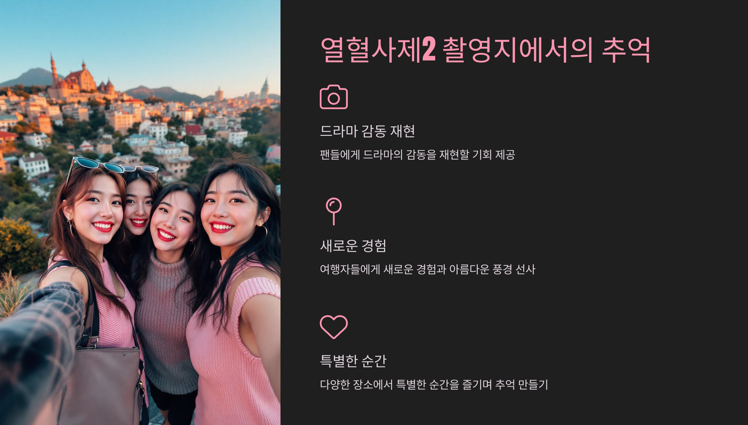 드라마 팬뿐만 아니라 새로운 여행지를 찾는 사람들에게도 흥미로운 정보가 될 것입니다.