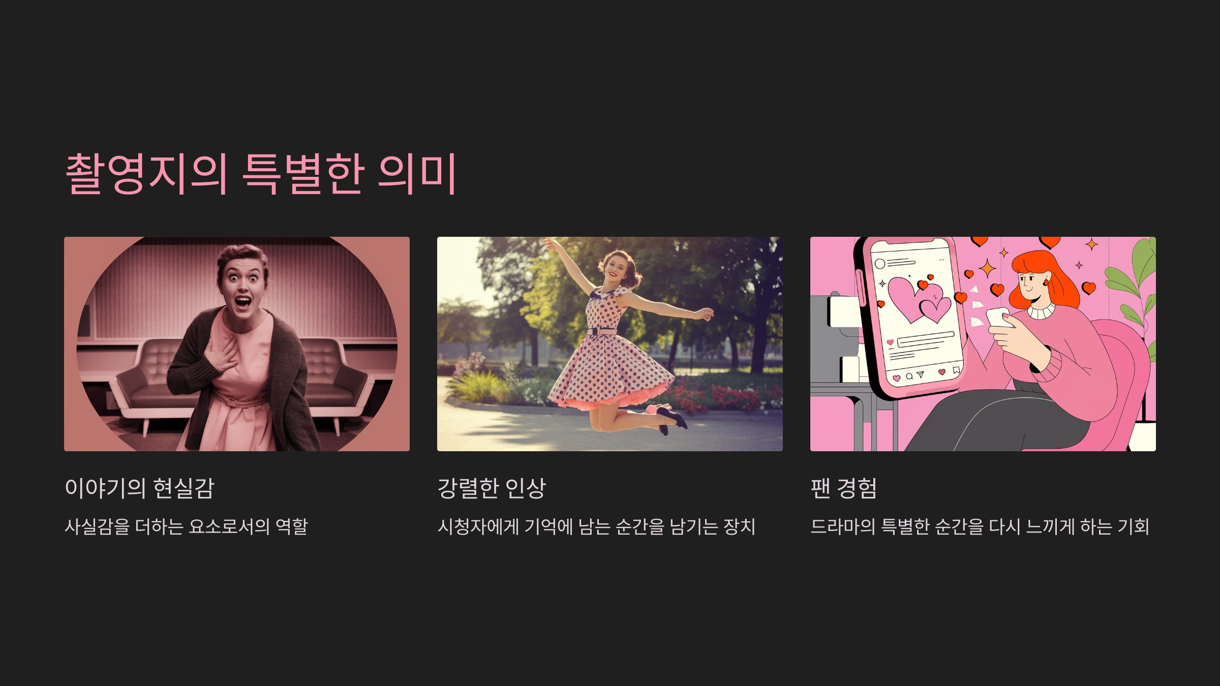 드라마 속에서 촬영지는 단순한 무대가 아니라, 이야기에 깊이를 더하는 도구로 기능합니다.