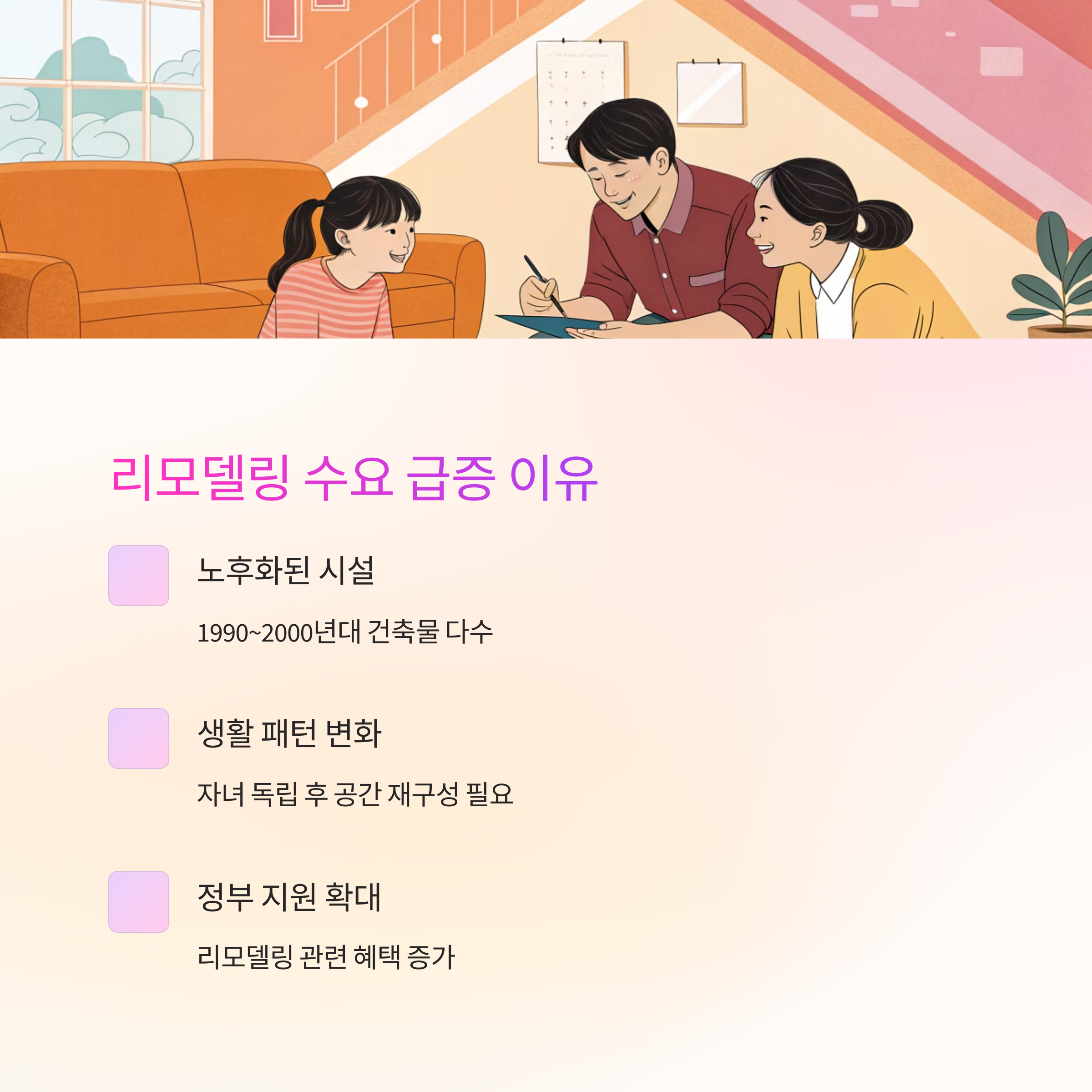 | 리모델링 목적 | 주거개선 vs 투자 목적 구분 |