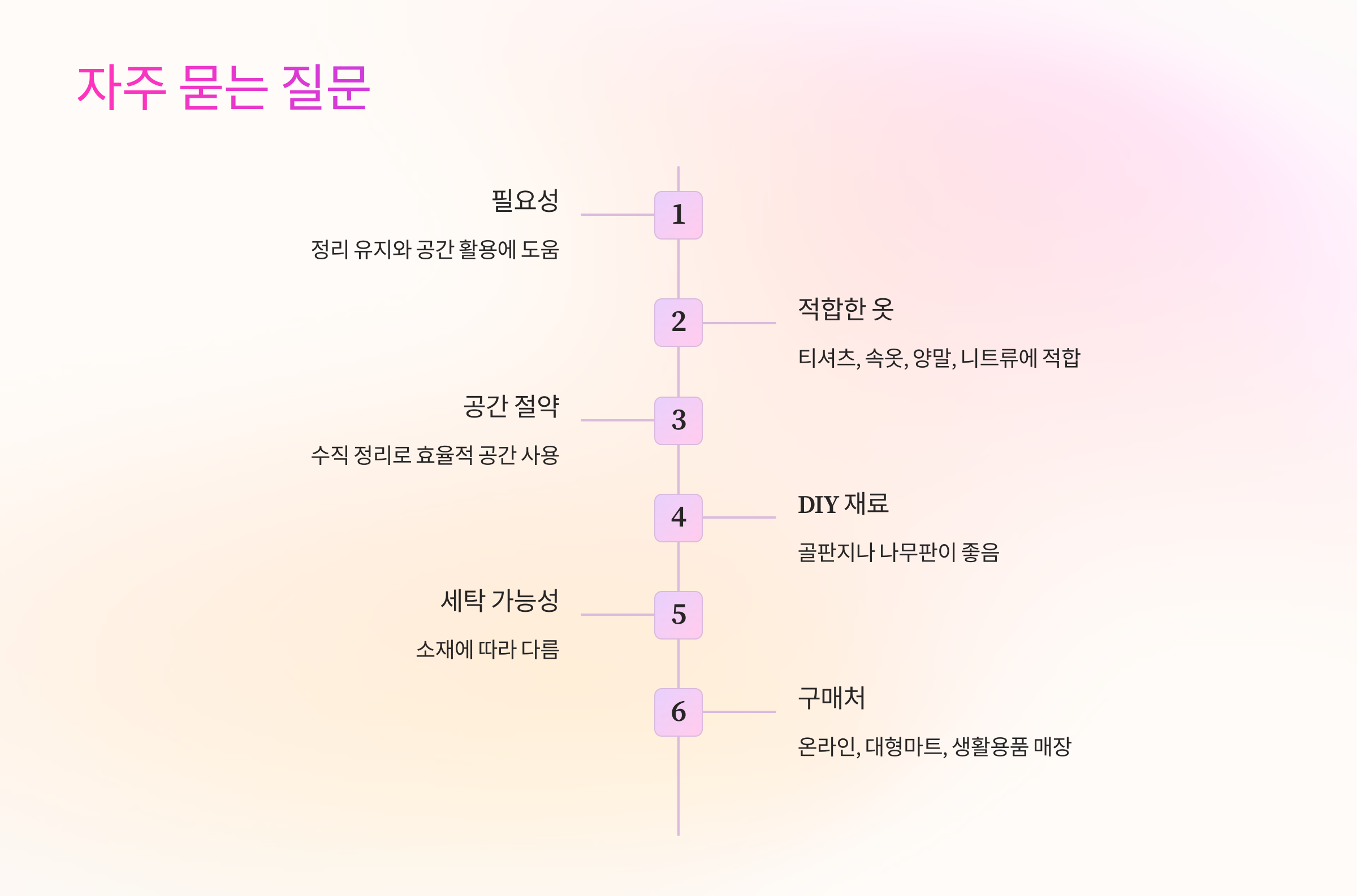 | 선반형 | 선반 위에 배치 가능, 분리형 | 티셔츠, 바지 정리 |