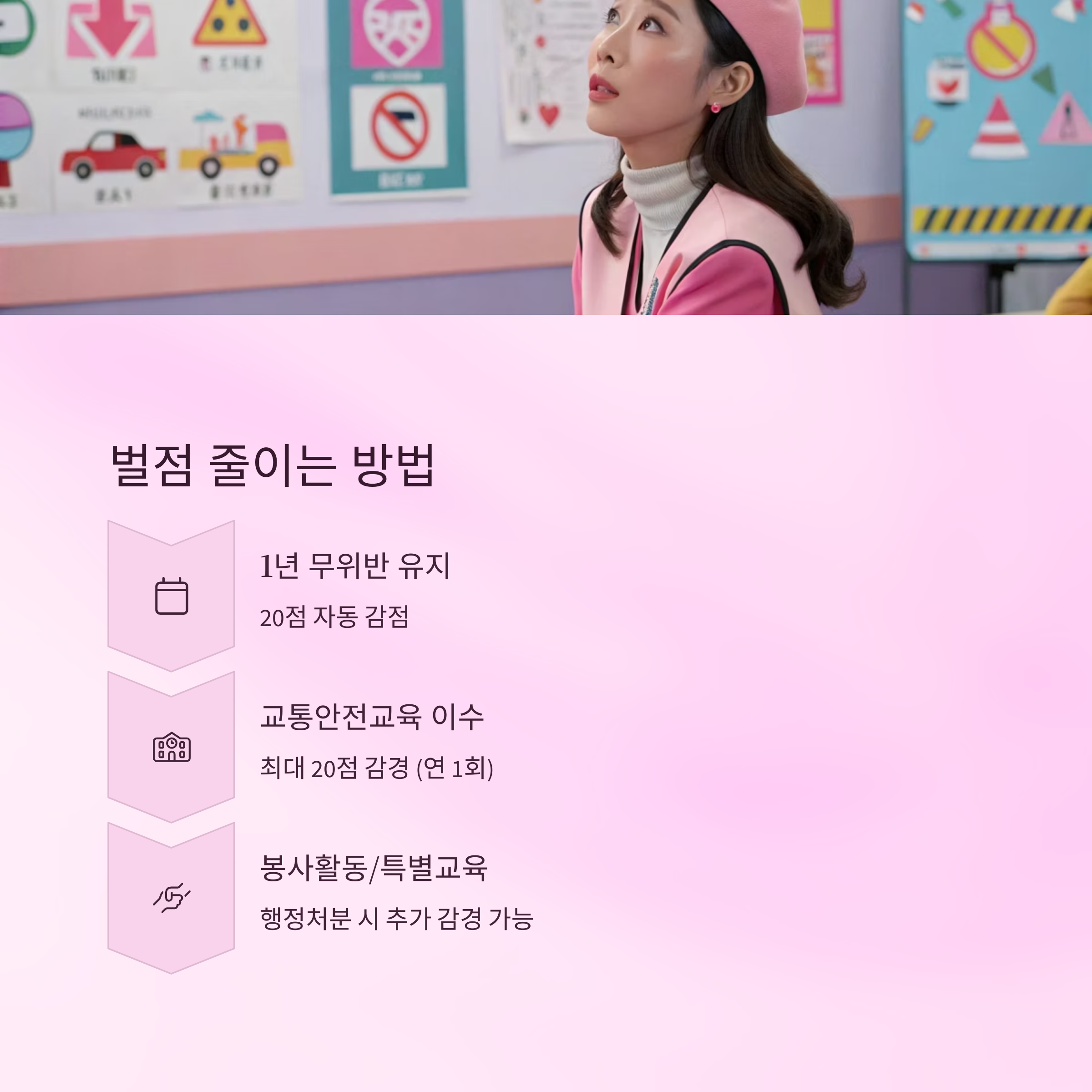 이미 누적된 벌점도 방법에 따라 줄일 수 있다는 사실, 알고 있었나요? 실수로 위반을 했더라도 절망할 필요 없어요. 벌점은 자동 소멸 조건도 있고, 직접 감면 받을 수 있는 제도도 마련되어 있어요!