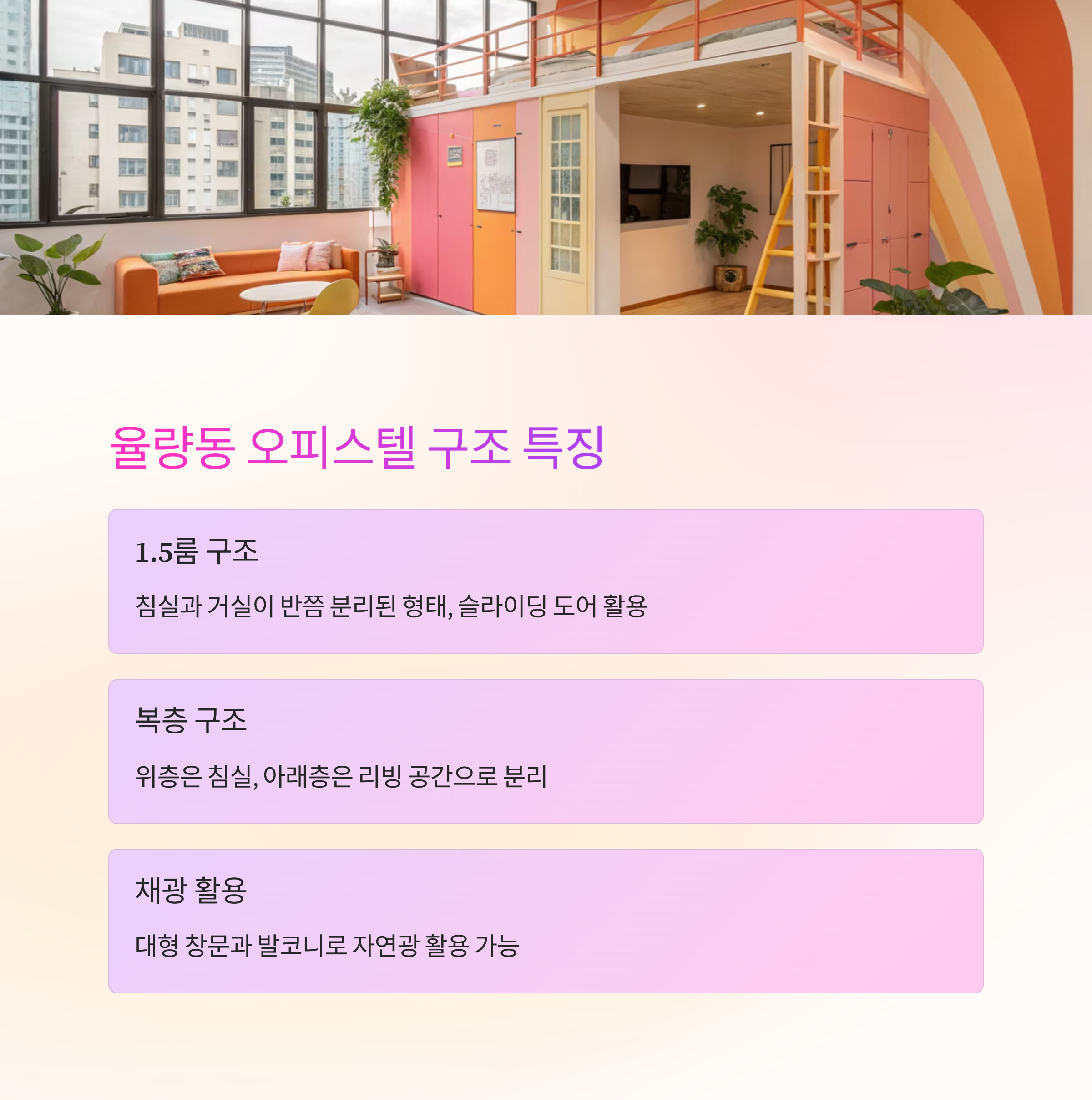 율량동은 청주에서도 주거 인프라가 잘 갖춰진 곳이에요. 신축 오피스텔이 많고, 대부분 풀옵션 형태로 제공되기 때문에 기본 구조가 효율적으로 설계되어 있어요. 보통 1.5룸 구조거나 복층 형태가 많죠.