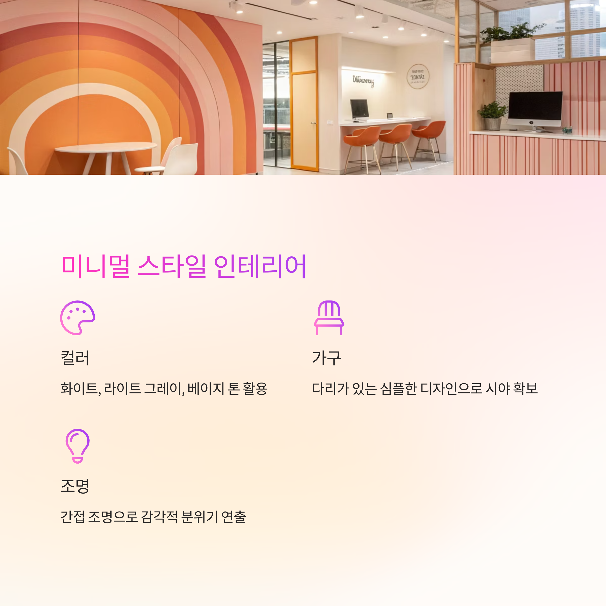 | 컬러 | 밝고 뉴트럴한 색감 | 화이트+우드 조합 |