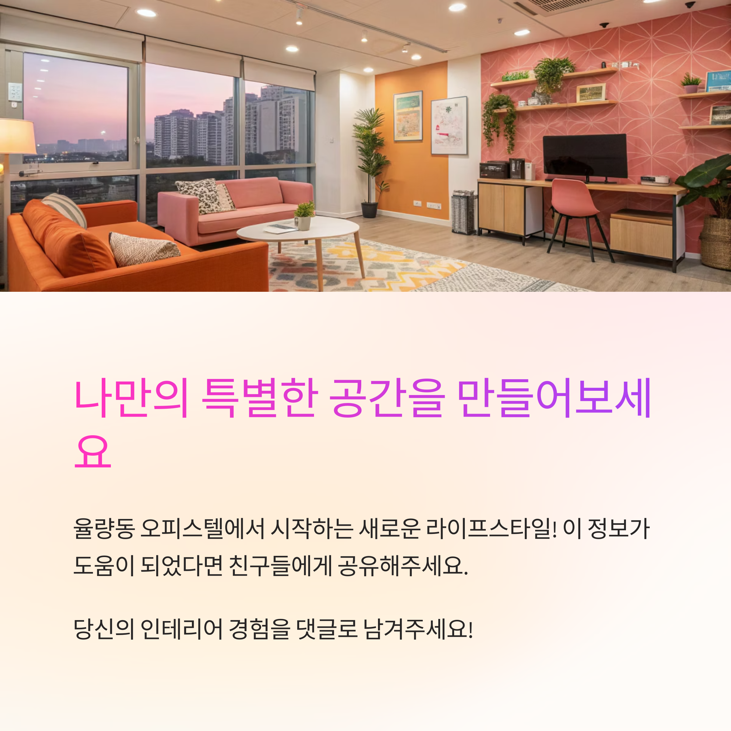 율량동은 청주에서 최근 주거지로 각광받는 지역이에요. 특히 오피스텔은 1인 가구나 신혼부부, 셰어하우스를 위한 공간으로 많이 선택되고 있죠. 그만큼 인테리어의 실용성과 감성 모두를 고려해야 해요.