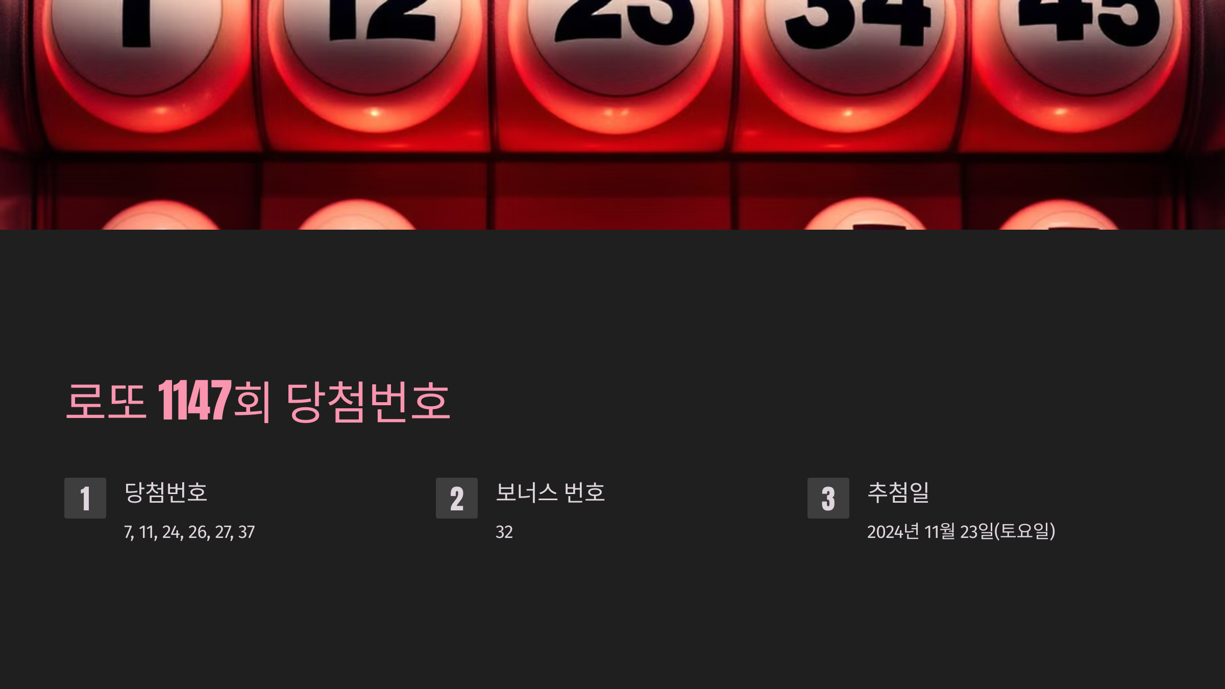 - 당첨번호: 7, 11, 24, 26, 27, 37