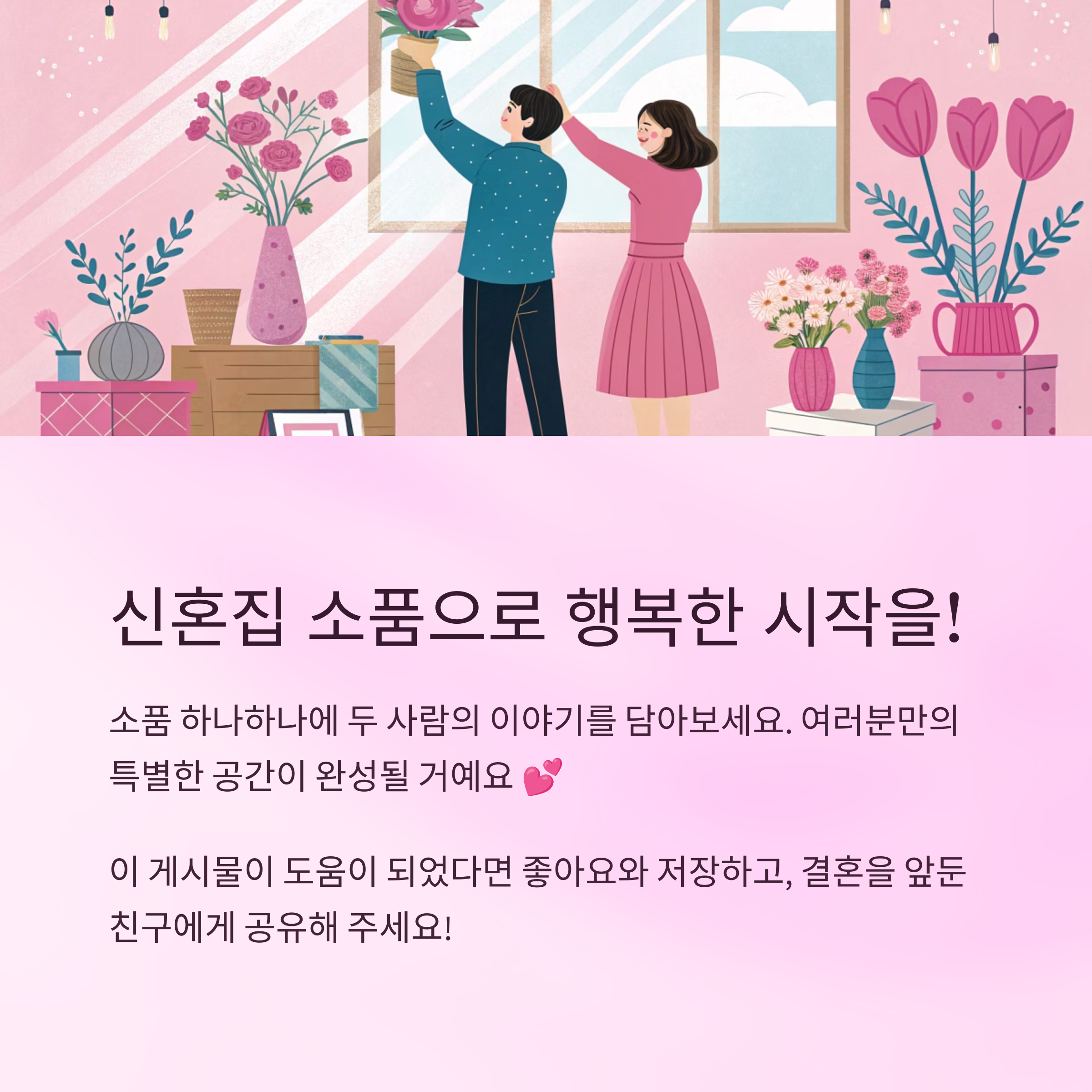 이처럼 전체 콘셉트를 먼저 정하면 소품 구입이 수월해지고, 예쁜데도 정돈된 신혼집이 완성돼요. 공간마다 테마를 나눠서 꾸미는 것도 재미있답니다 🎈