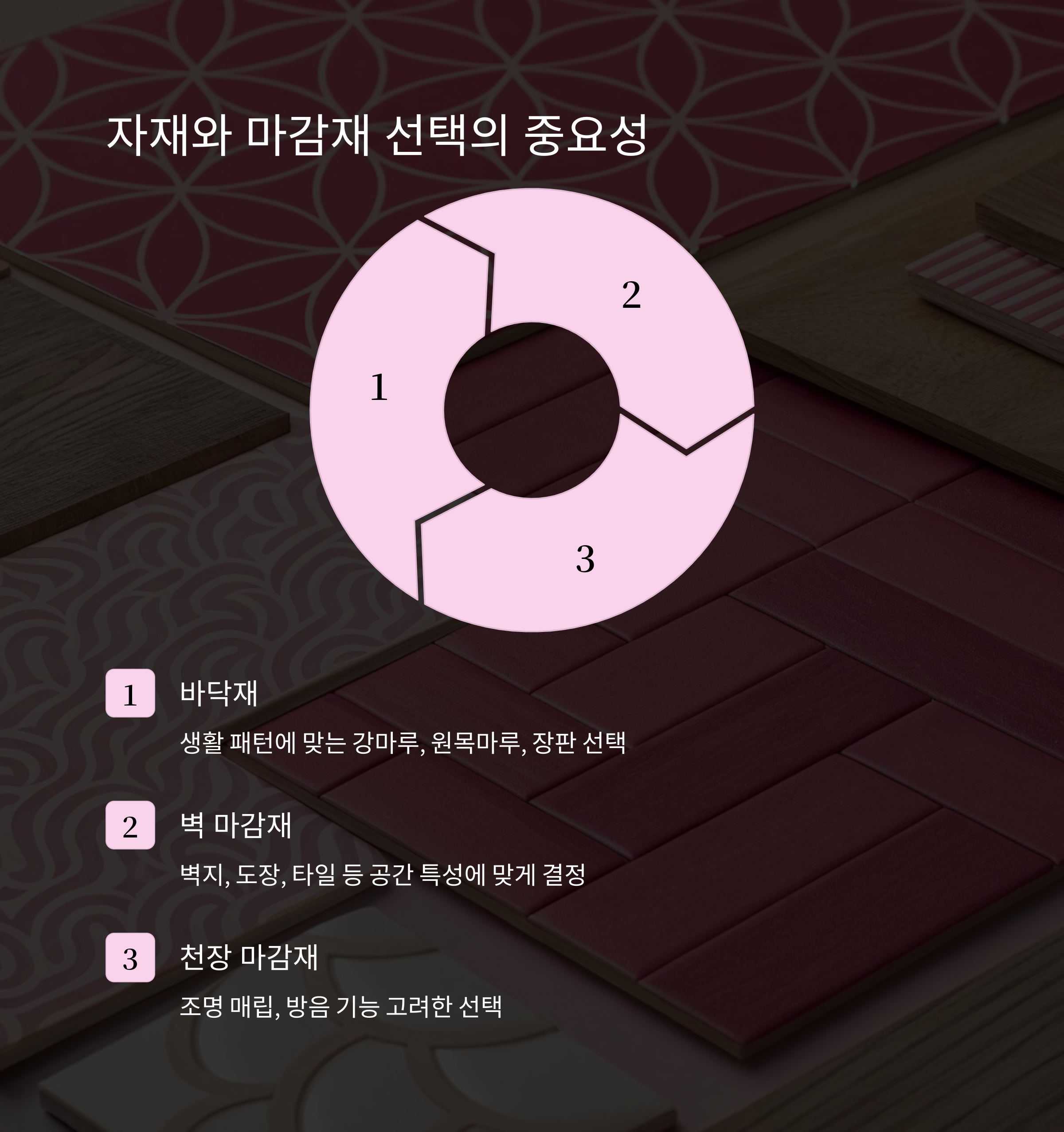 | 원목마루 | 고급스러움, 자연 친화 | 침실, 서재 |