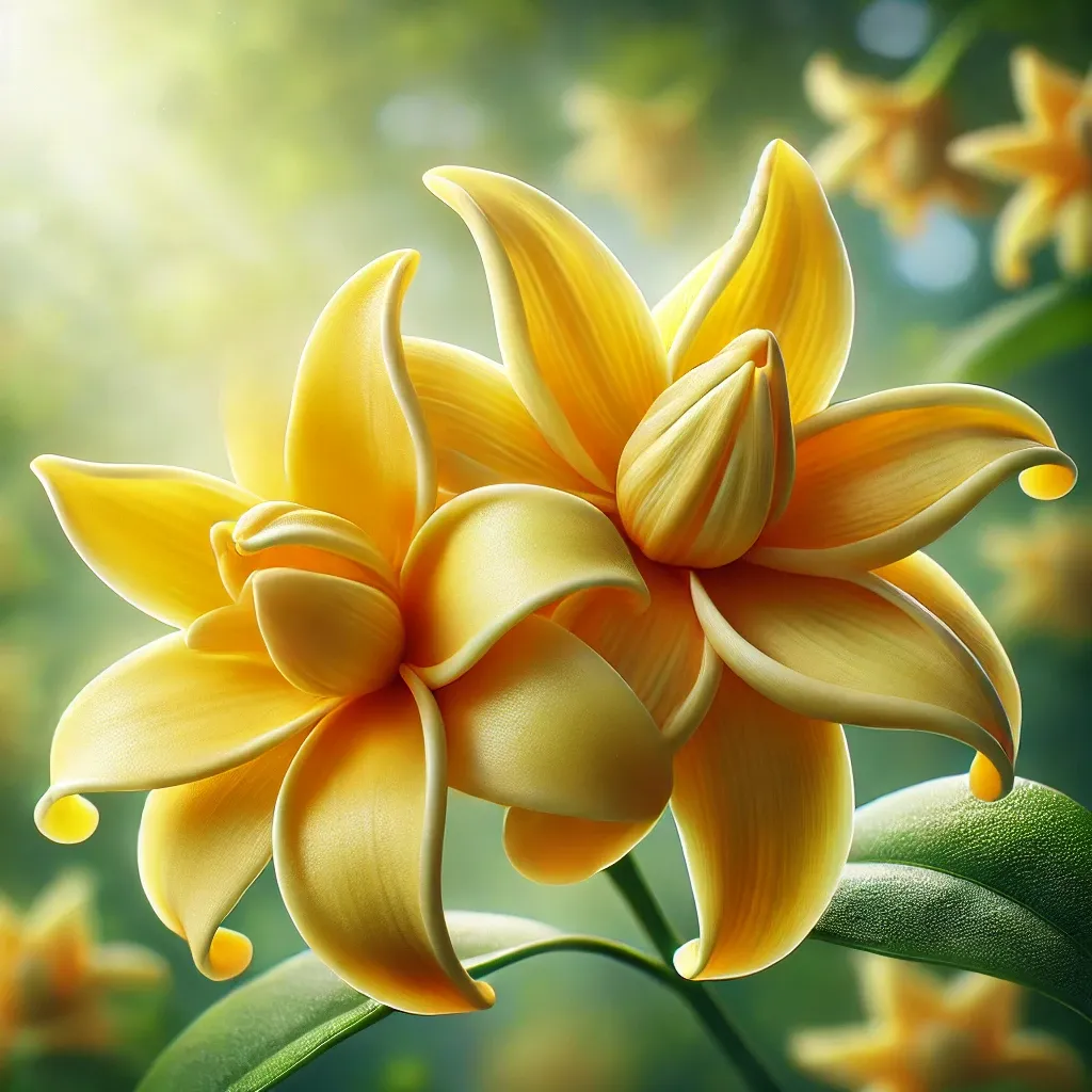 일랑일랑의 향기는 매우 독특하고, 한 번 맡으면 잊기 어려울 정도로 강렬합니다. 그 향은 달콤하면서도 우아한 꽃 향과 과일 향이 섞여 있으며, 한편으로는 관능적이고 깊이 있는 향으로 묘사됩니다. 이러한 복합적인 향 덕분에 일랑일랑은 향수 제작에 있어서 베이스 노트나 미들 노트로 매우 자주 사용됩니다. 특히 그 달콤하면서도 약간 묵직한 향기는 향수를 더욱 풍부하게 만들어주며, 여러 향기 성분들과 조화를 이루는 데 탁월합니다.