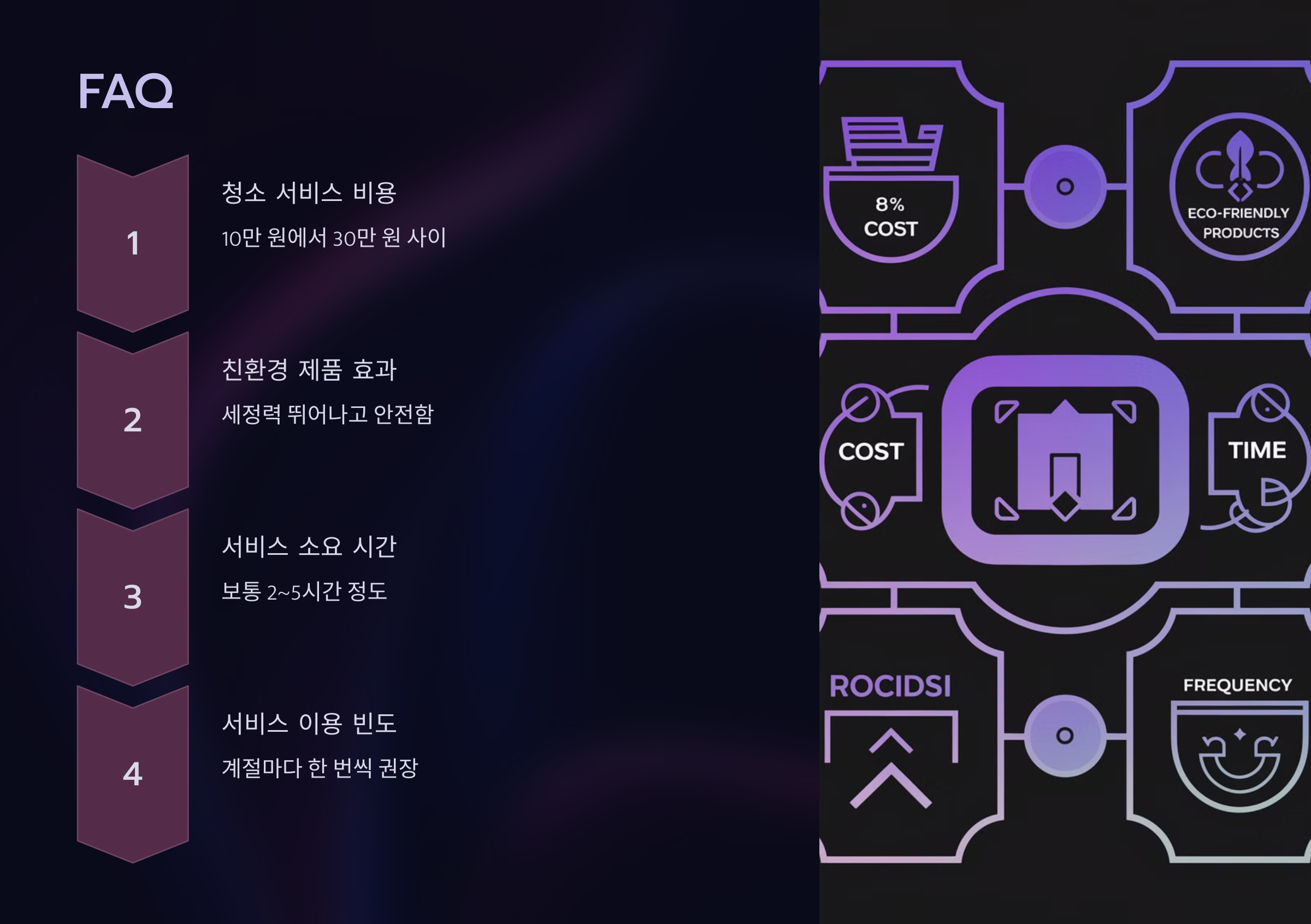 A8. 이사, 새해 맞이, 계절 변화, 행사 준비 등 특별한 상황에서 유용해요. 평소 바쁜 일정으로 청소가 어려운 경우에도 적합해요.