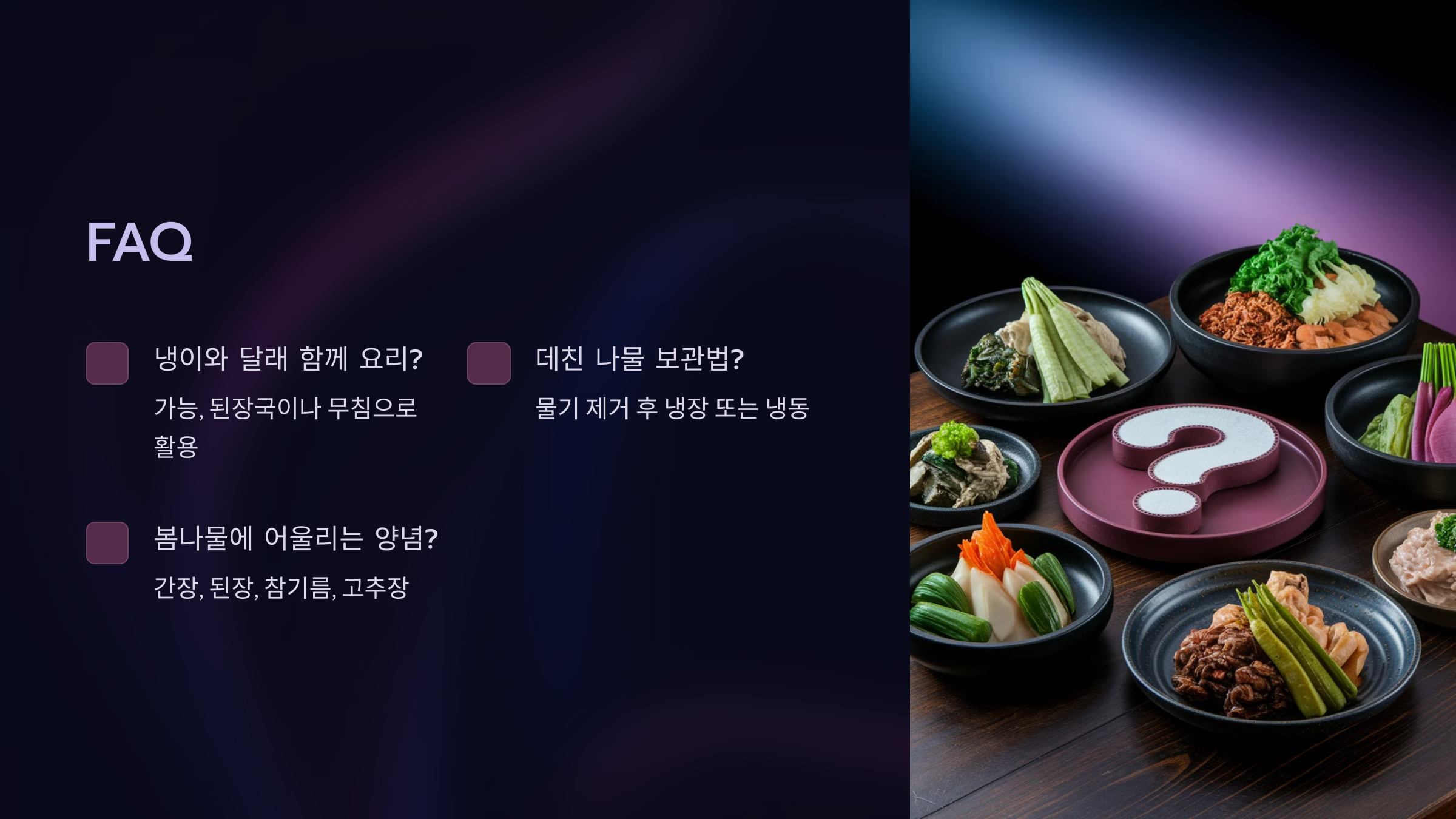 Q3. 봄나물 요리에 어울리는 양념은 무엇인가요?