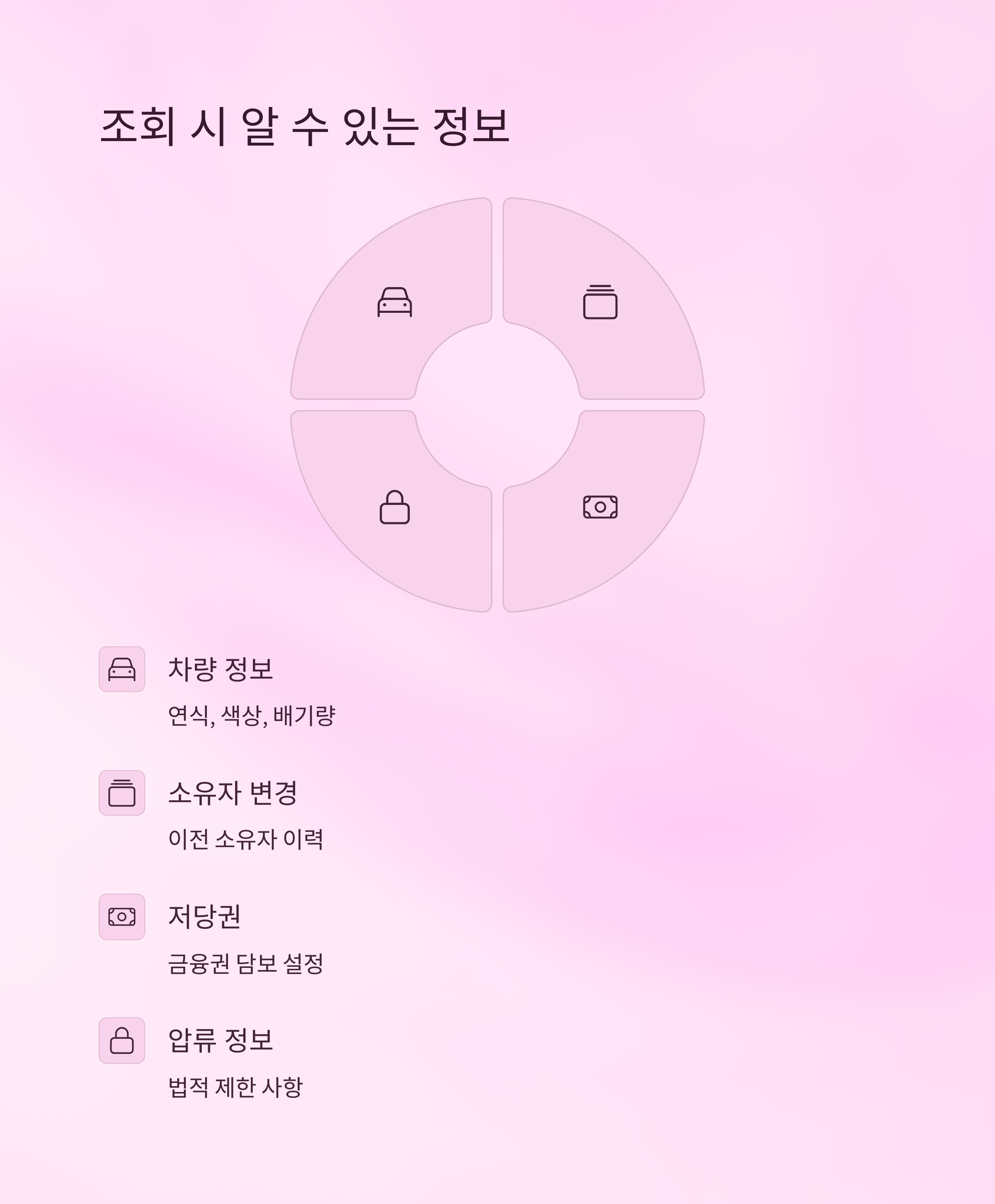게다가 자동차세 체납 여부나 말소 등록 여부까지 확인 가능해서, 차량의 ‘법적 문제’가 없는지를 판단하는 데 큰 도움이 돼요. 정말 중요한 정보죠!