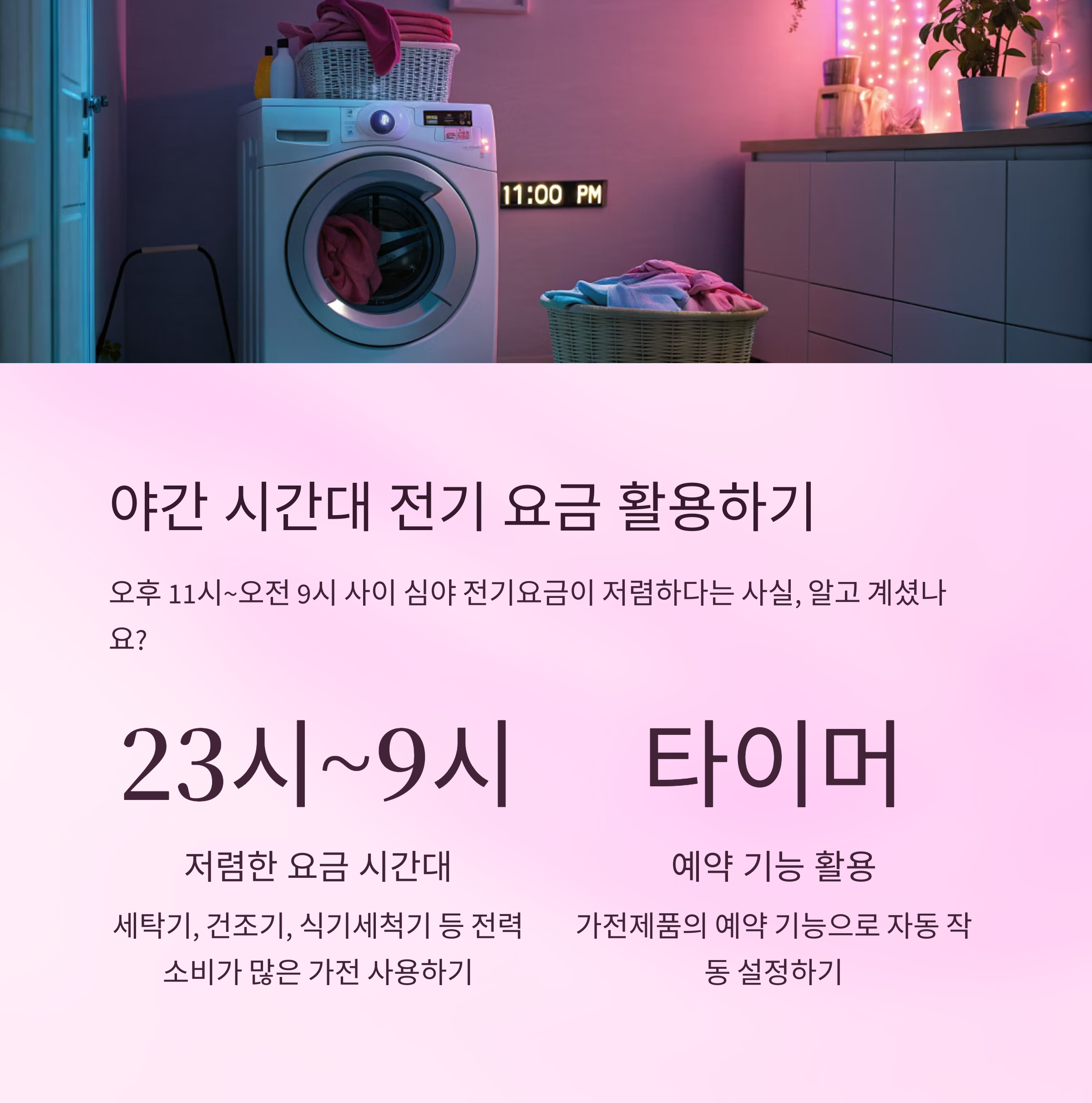 | 세탁기·건조기 | 23시~9시 | 예약 기능 활용 |