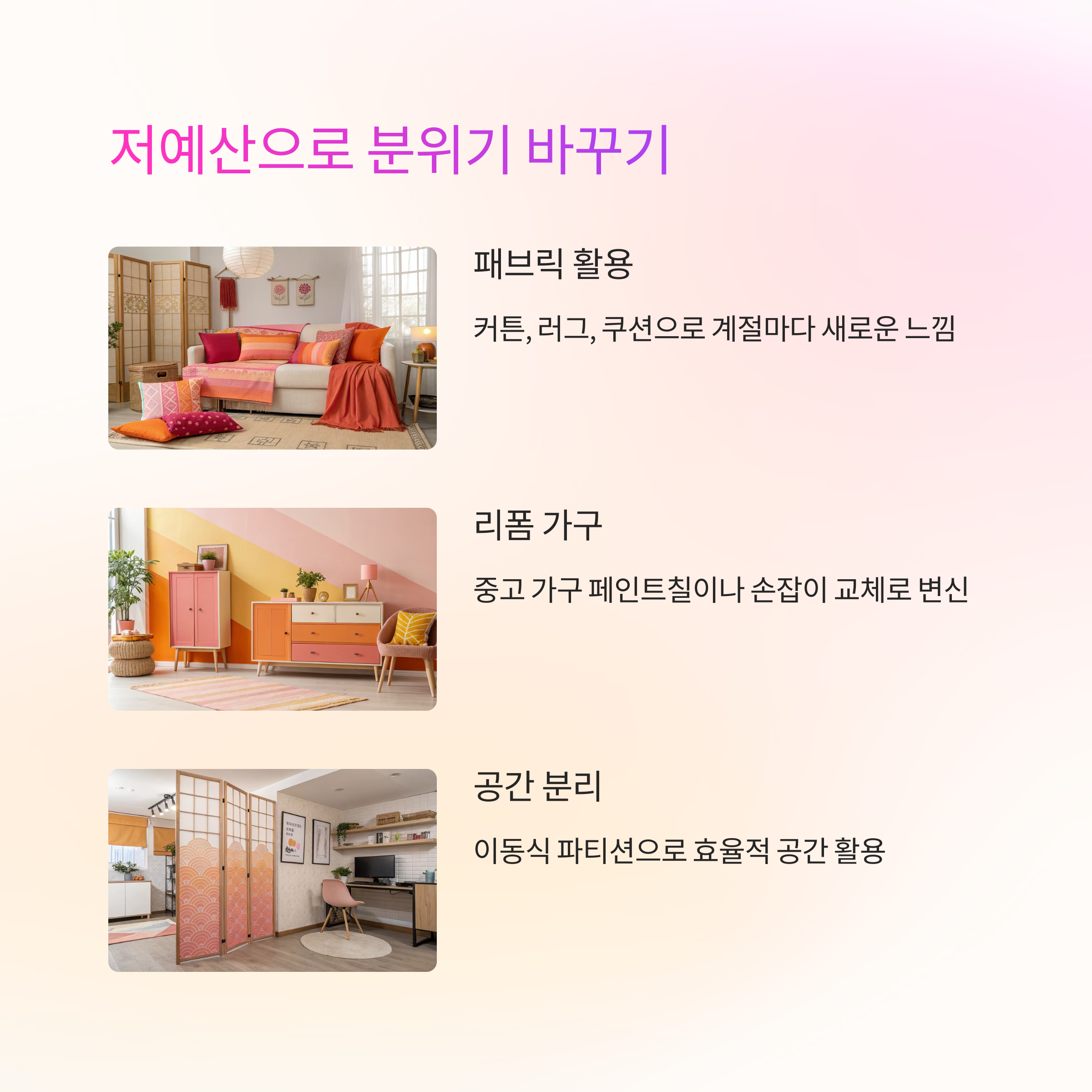 인테리어는 돈이 많이 든다는 생각, 아직도 갖고 있나요? 요즘은 정말 저렴한 비용으로도 집을 꽤 근사하게 바꿀 수 있어요. 중요한 건 돈보다 아이디어랍니다. 😉