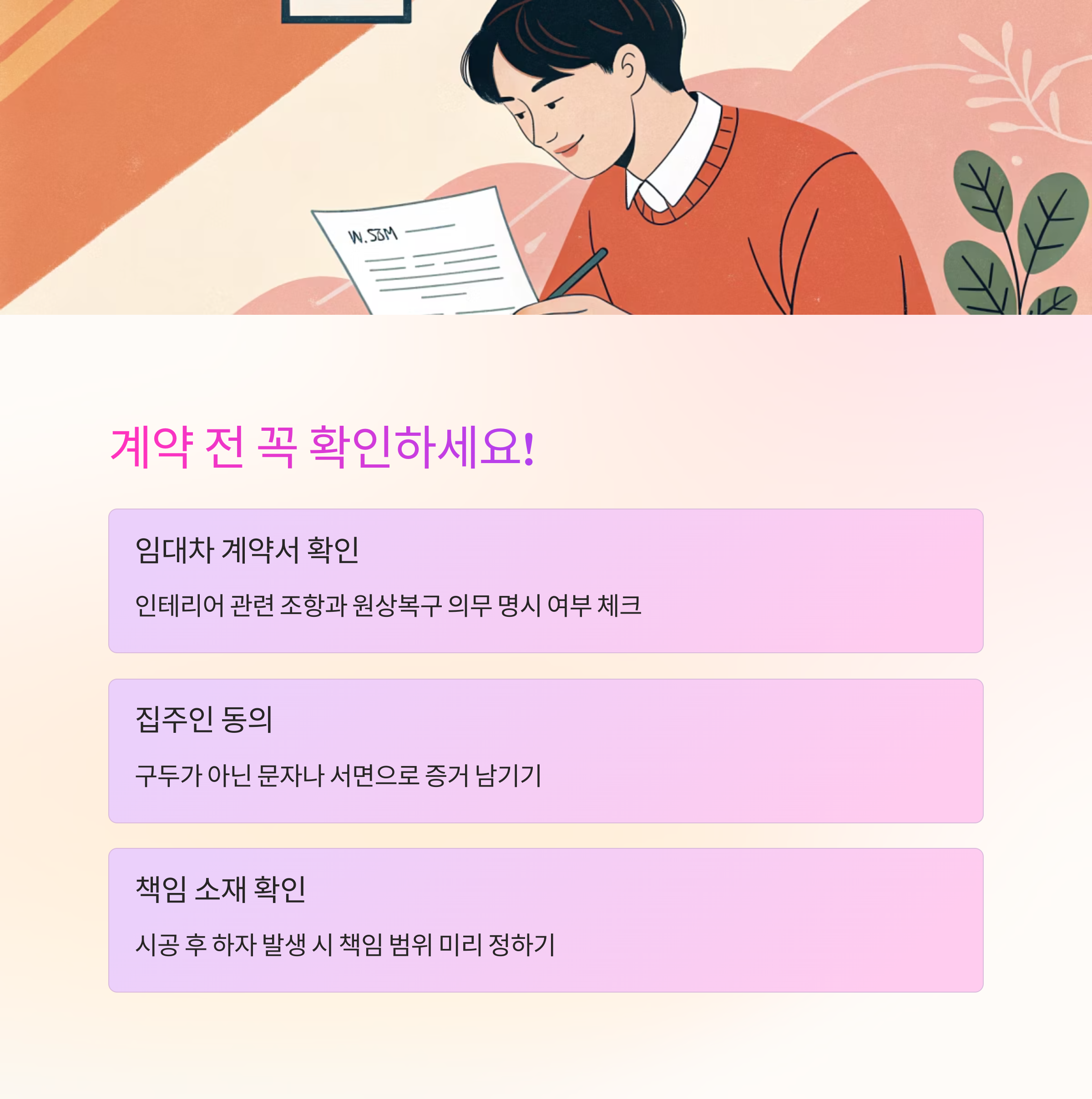 | 계약 확인 | 인테리어 가능 범위 명시 여부 |