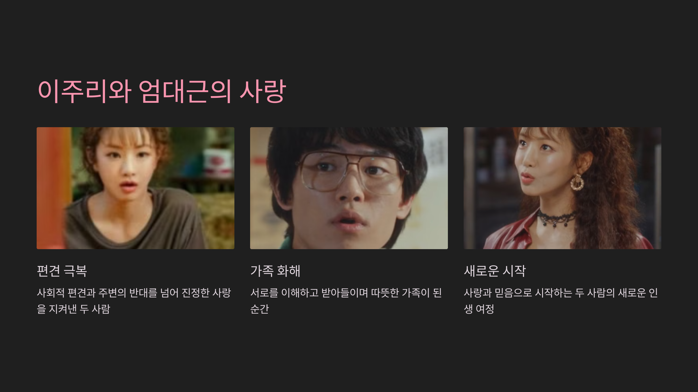 이주리와 엄대근의 로맨스는 드라마의 또 다른 감동적인 축을 이루었습니다. 두 사람은 사회적 편견과 주변의 반대를 이겨내며 서로를 향한 신뢰와 사랑을 키워갔습니다. 특히 엄대근의 어머니가 두 사람의 사랑을 받아들이며 보여준 화해의 장면은 따뜻한 감동을 선사했습니다. 마지막 회에서는 이주리와 엄대근이 결혼을 약속하며 새로운 인생의 시작을 준비하는 모습이 그려졌고, 이는 사랑이 갈등과 어려움을 극복하는 강력한 힘임을 시사했습니다.